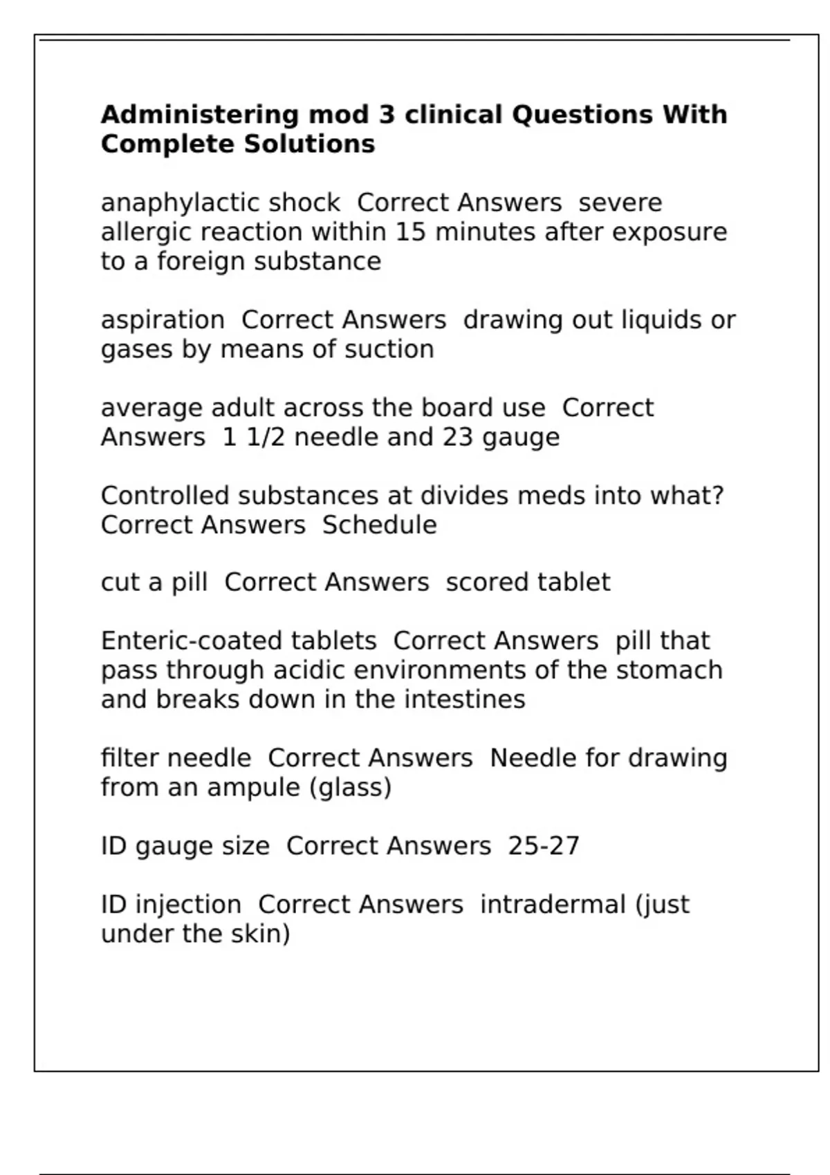 Administering mod 3 clinical Questions With Complete Solutions