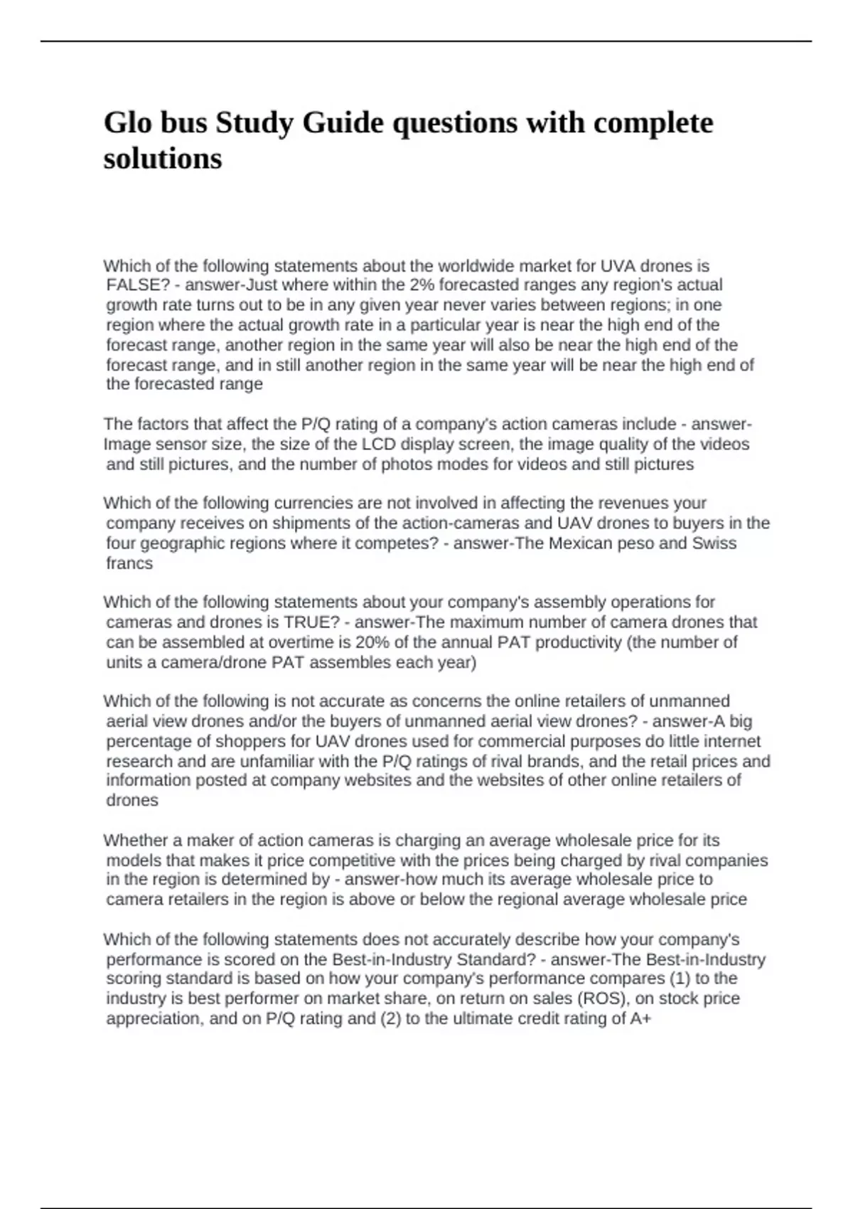 Glo - bus Study Guide questions with complete solutions