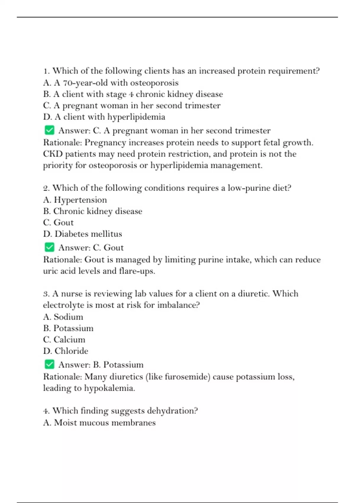 3. A nurse is reviewing lab values for a client on a diuretic. Which