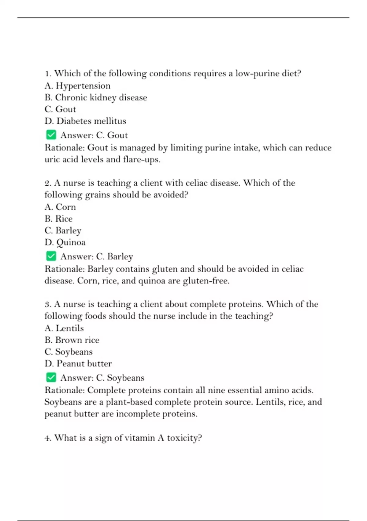 Rationale: Gout is managed by limiting purine intake, which can reduce