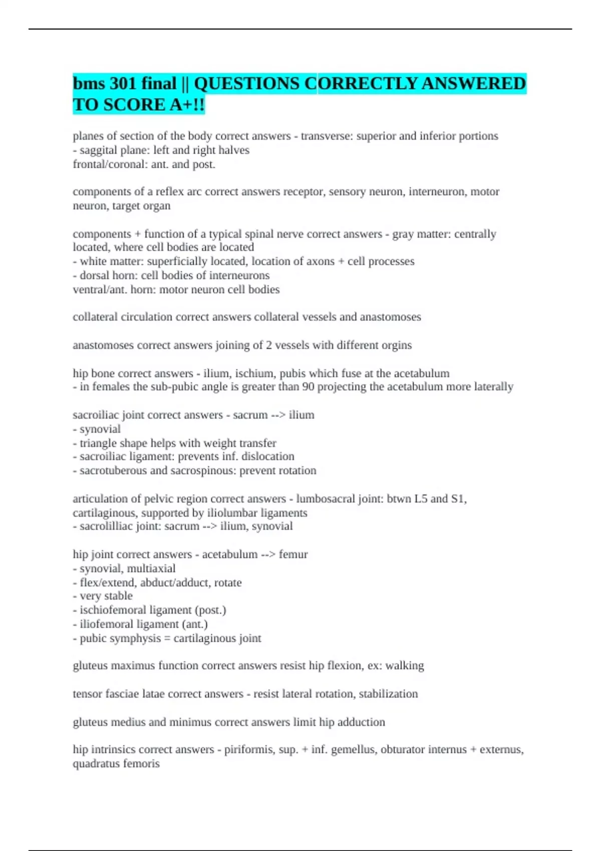 bms 301 final || QUESTIONS CORRECTLY ANSWERED