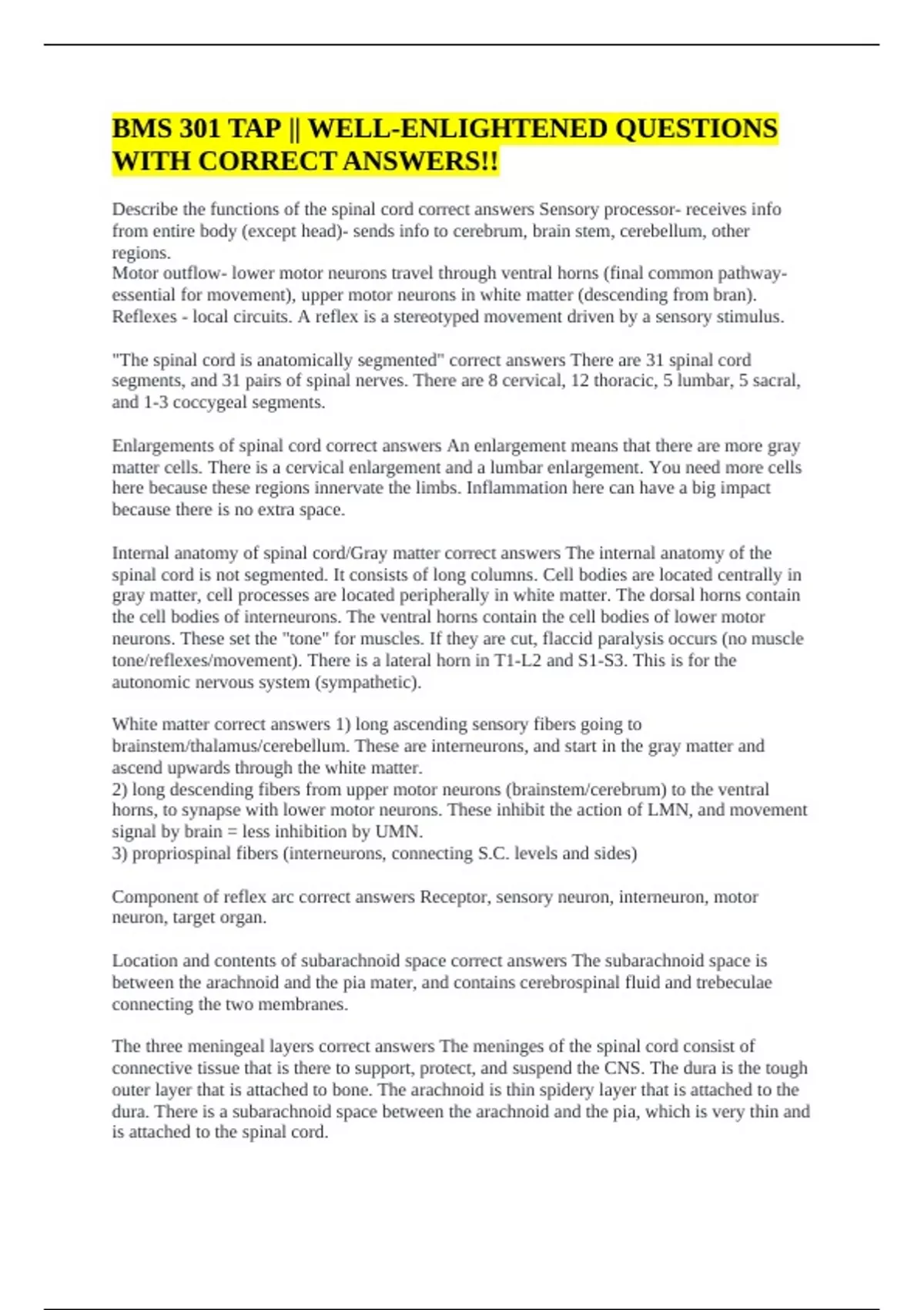 BMS 301 TAP || WELL-ENLIGHTENED QUESTIONS WITH CORRECT ANSWERS!!