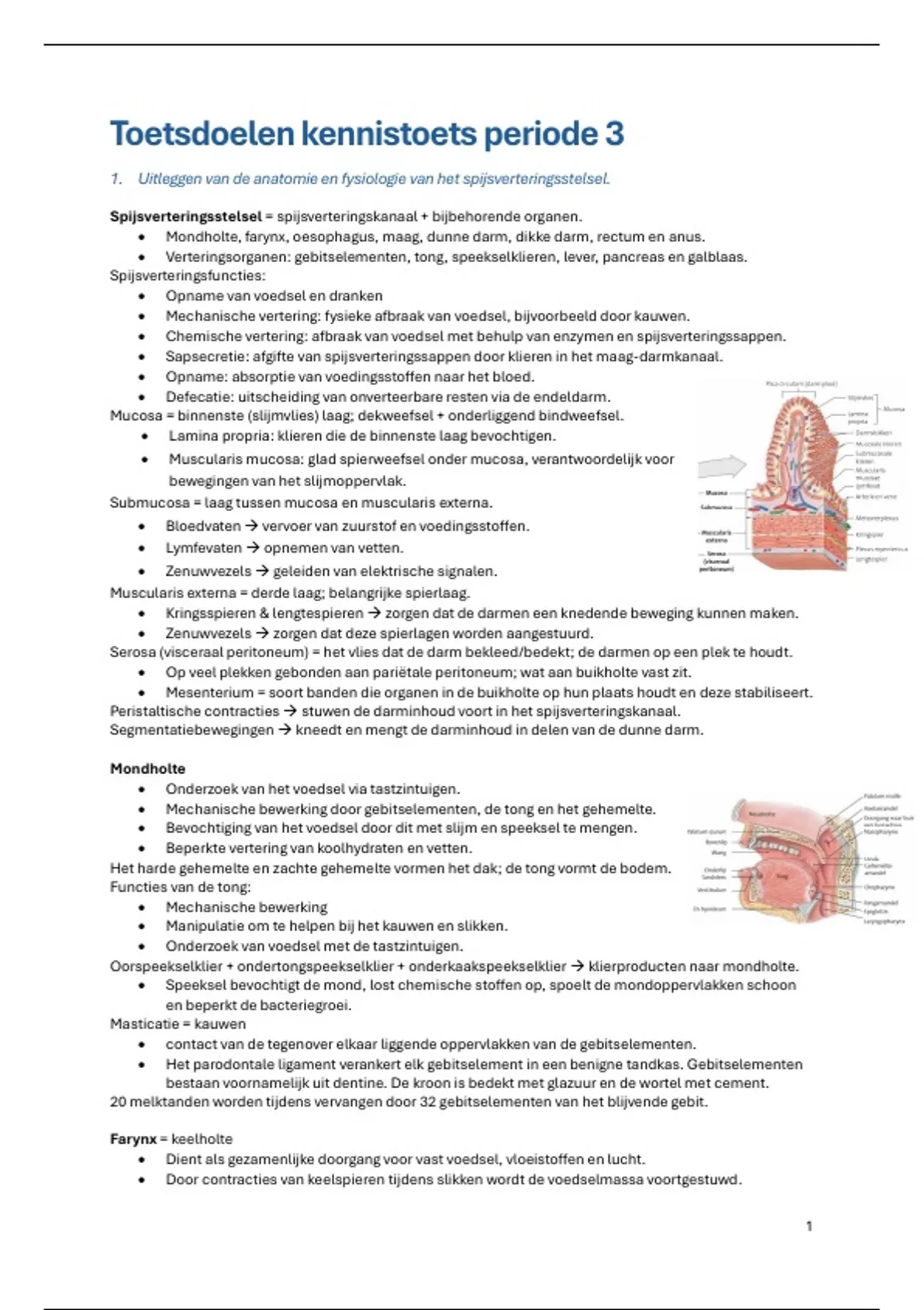 1. Uitleggen van de anatomie en fysiologie van het spijsverteringsstelsel.