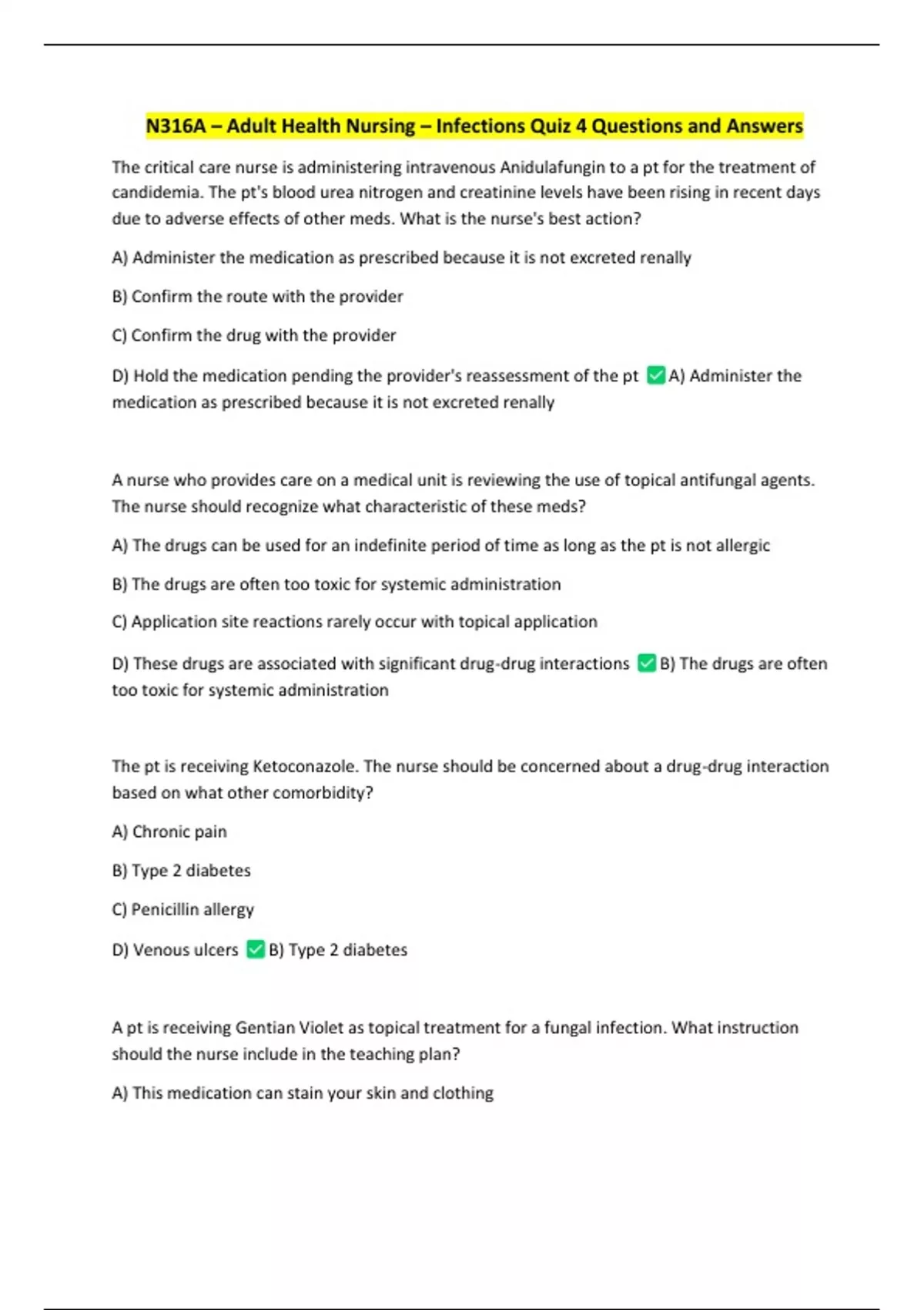 N316A – Adult Health Nursing – Infections Quiz 4 Questions and Answers