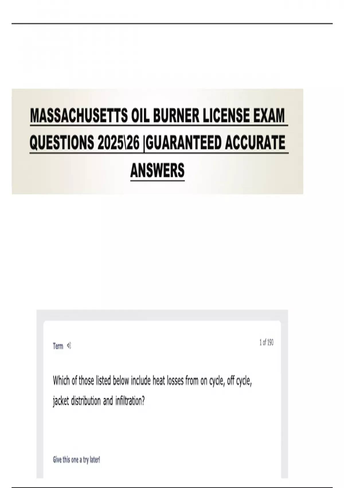 MASSACHUSETTS OIL BURNER LICENSE EXAM QUESTIONS 202526 |GUARANTEED ACCURATE ANSWERS