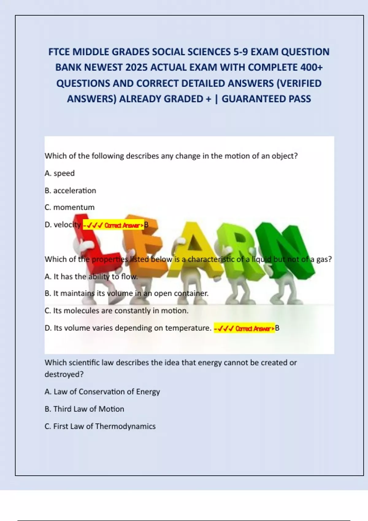 FTCE MIDDLE GRADES SOCIAL SCIENCES 5-9 EXAM QUESTION BANK NEWEST 2025 ACTUAL EXAM WITH COMPLETE 400+ QUESTIONS AND CORRECT DETAILED ANSWERS (VERIFIED ANSWERS) ALREADY GRADED + | GUARANTEED PASS FTCE MIDDLE GRADES SOCIAL SCIENCES 5-9 EXAM QUESTION BANK NEWEST 2025 ACTUAL EXAM WITH COMPLETE 400+ QUESTIONS AND CORRECT DETAILED ANSWERS (VERIFIED ANSWERS) ALREADY GRADED + | GUARANTEED PASS FTCE MIDDLE GRADES SOCIAL SCIENCES 5-9 EXAM QUESTION BANK NEWEST 2025 ACTUAL EXAM WITH COMPLETE 400+ QUESTIONS AND CORRECT DETAILED ANSWERS (VERIFIED ANSWERS) ALREADY GRADED + | GUARANTEED PASS