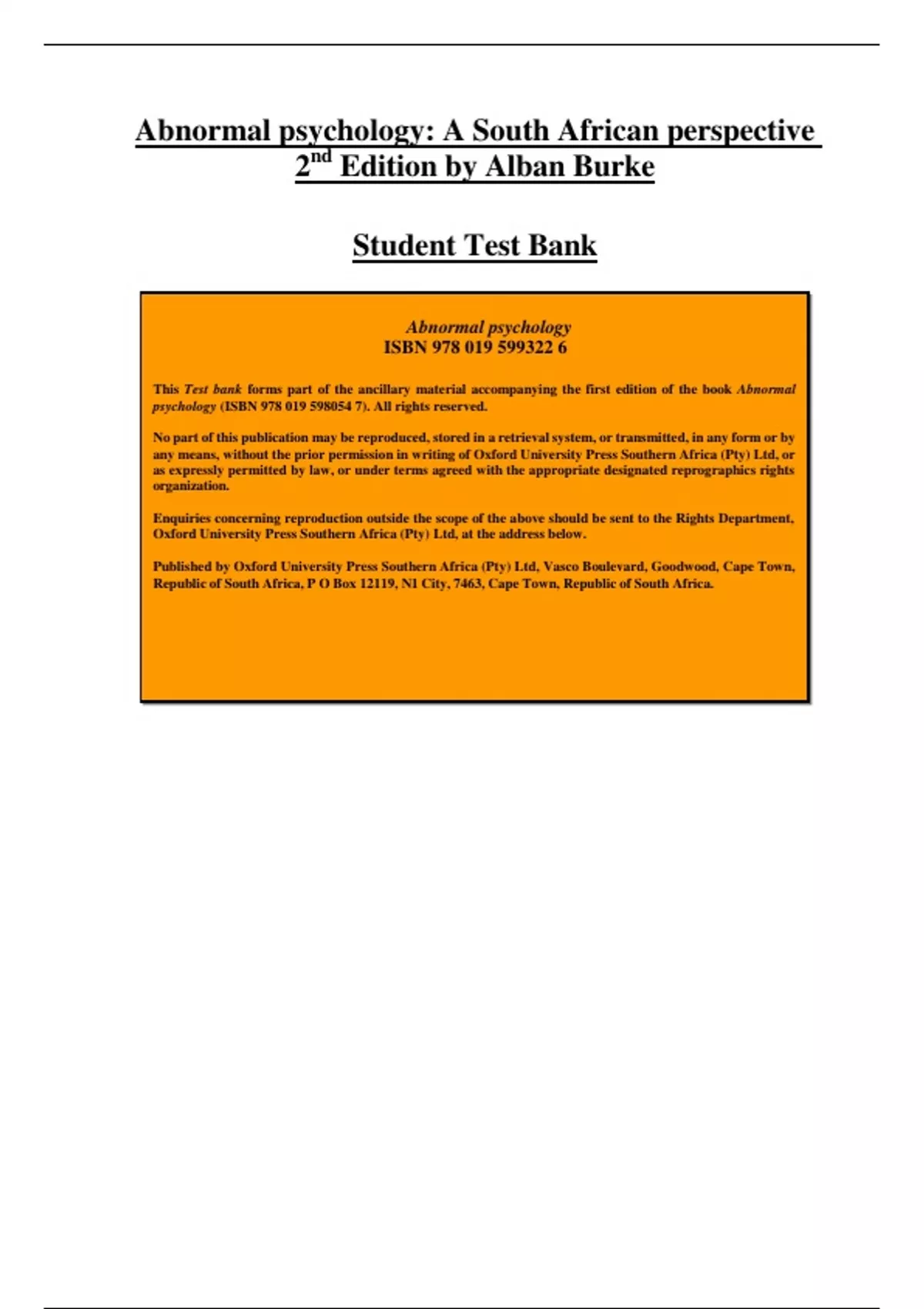This Test bank forms part of the ancillary material accompanying the first edition of the book Abnormal