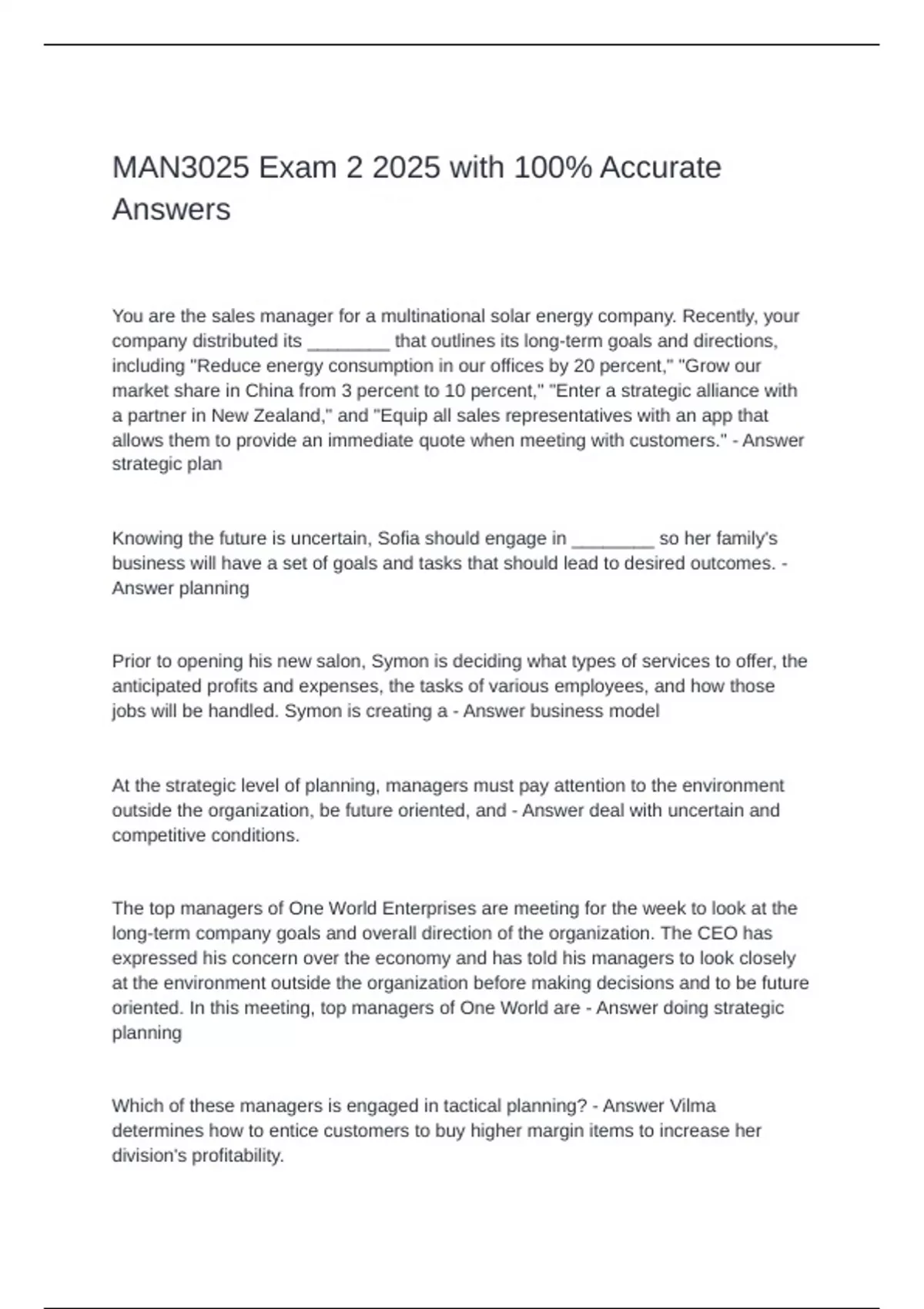 oriented. In this meeting, top managers of One World are - Answer doing strategic