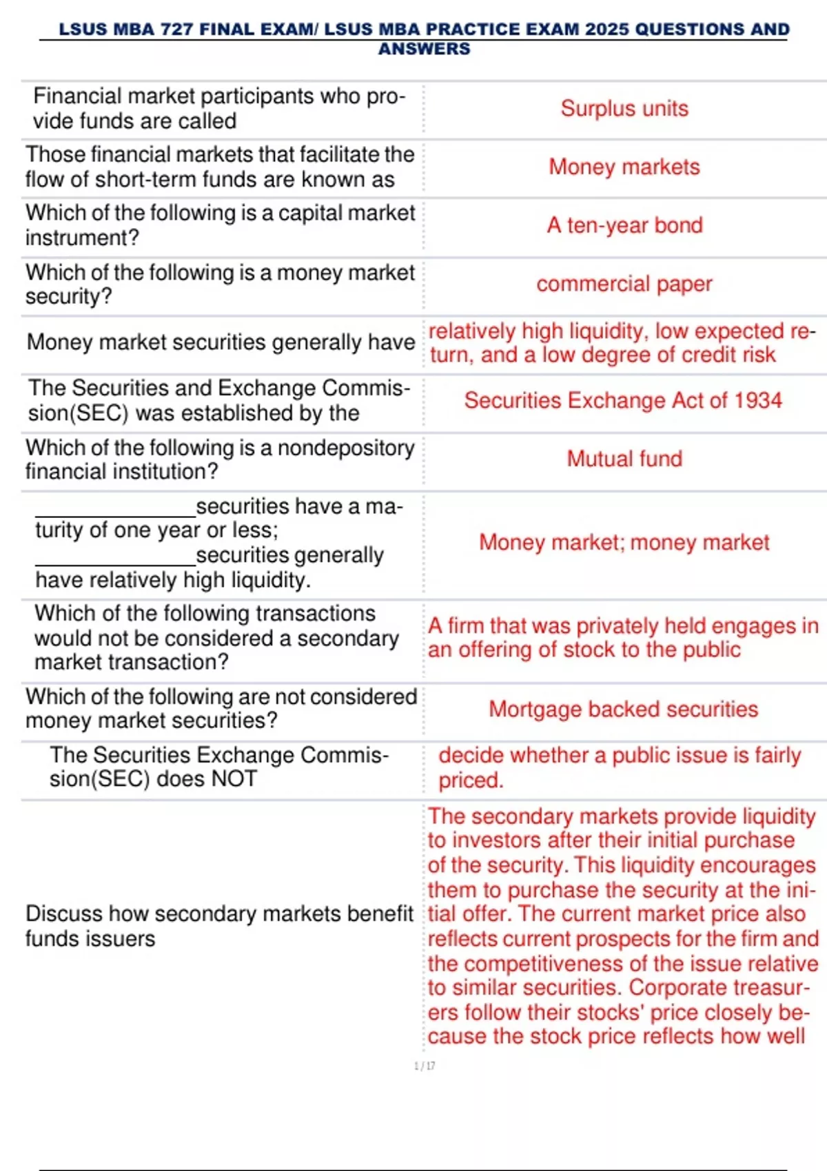 , LSUS MBA 727 FINAL EXAM/ LSUS MBA PRACTICE EXAM 2025 QUESTIONS AND