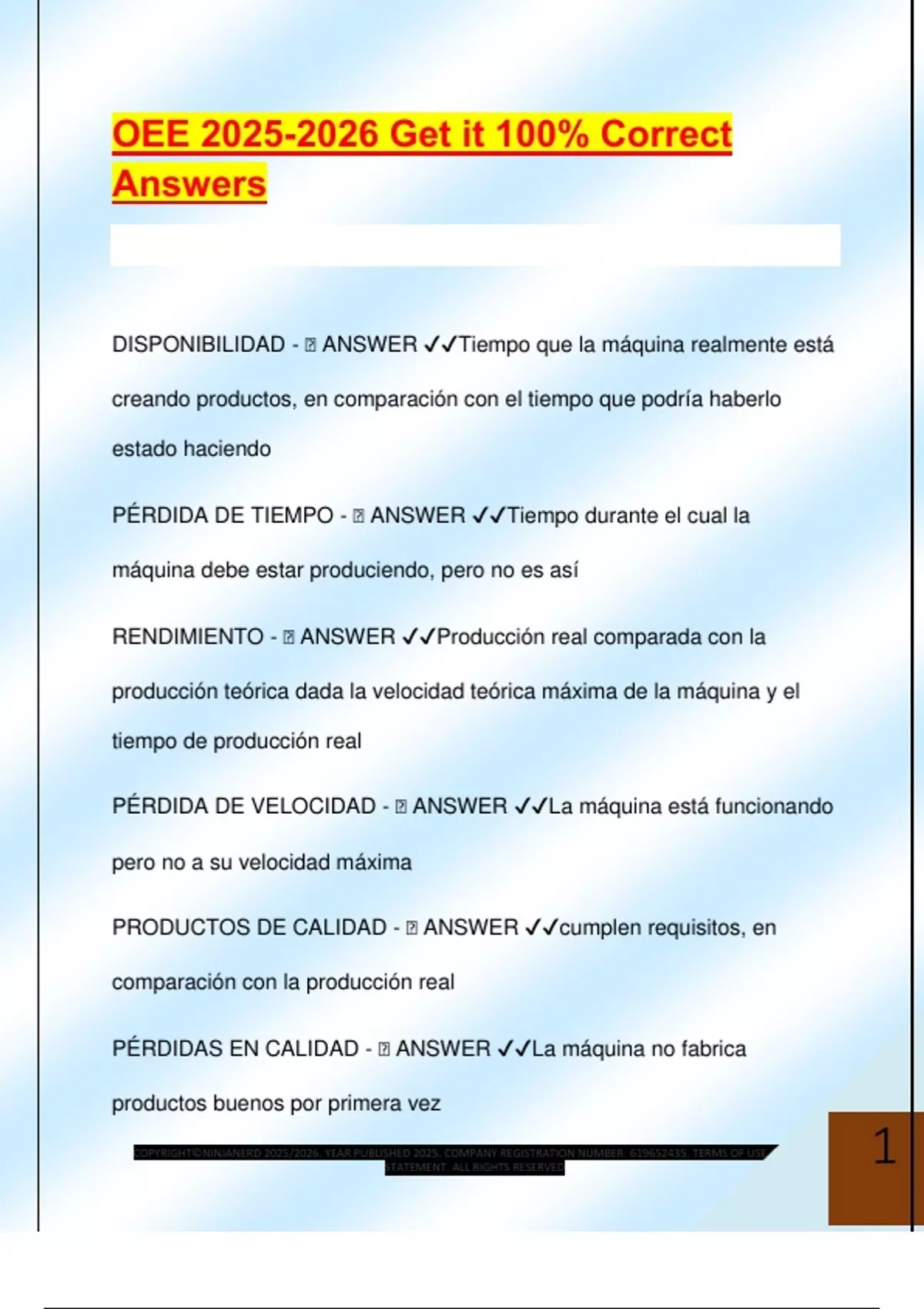 OEE Get it 100% Correct Answers DISPONIBILIDAD -