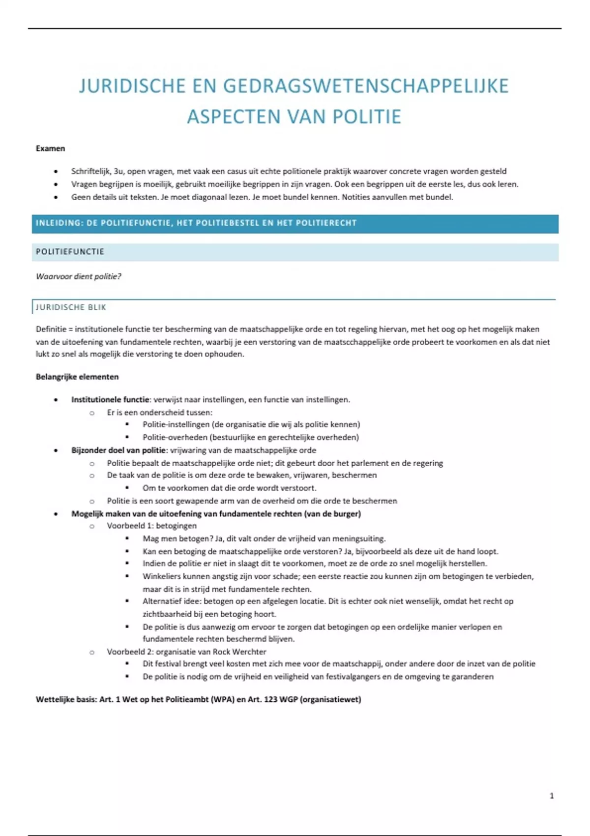 INLEIDING: DE POLITIEFUNCTIE, HET POLITIEBESTEL EN HET POLITIERECHT