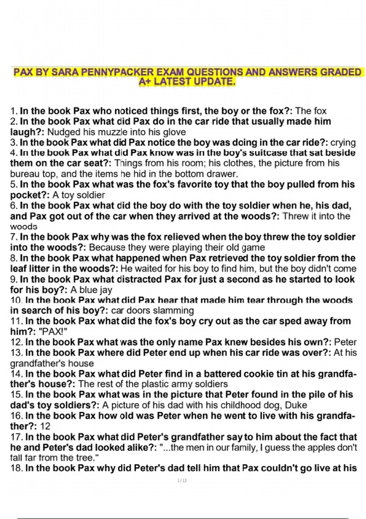 PAX BY SARA PENNYPACKER EXAM QUESTIONS AND ANSWERS GRADED A+ LATEST UPDATE.
