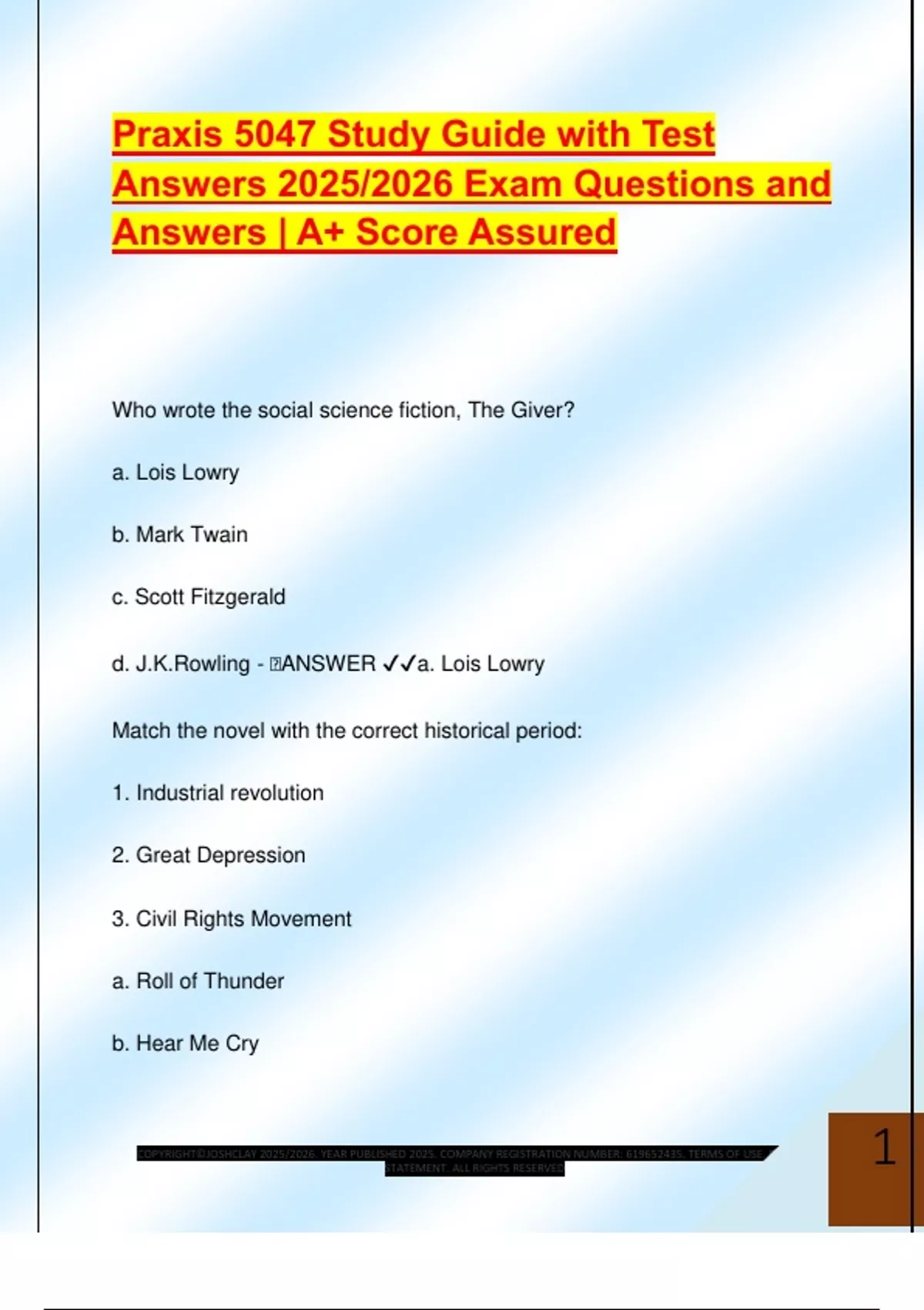 d. J.K.Rowling - 🧠ANSWER ✔✔a. Lois Lowry