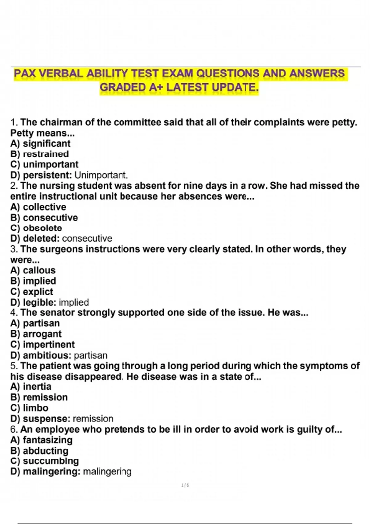PAX VERBAL ABILITY TEST EXAM QUESTIONS AND ANSWERS GRADED A+ LATEST UPDATE. PAX exam questions 2025 verbal ability test PAX PAX test answers updated latest PAX verbal questions A+ graded PAX questions PAX exam preparation verbal ability test PAX answers PAX test study guide updated PAX exam questions PAX verbal ability answers PAX exam practice questions PAX test review 2023 PAX verbal questions and answers PAX exam strategies PAX test tips and tricks PAX verbal reasoning questions PAX exam sample questions PAX test latest updates PAX verbal exam preparation A+ PAX test help PAX test results 2025 PAX verbal assessment PAX test mock exams PAX practice test online PAX verbal aptitude test
