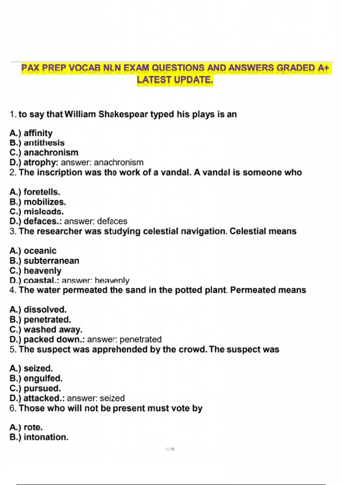PAX PREP VOCAB NLN EXAM QUESTIONS AND ANSWERS GRADED A+ LATEST UPDATE. PAX exam preparation NLN exam practice questions PAX prep latest update NLN exam answers PAX graded questions NLN graded A+ answers PAX prep vocabulary NLN exam preparation tips PAX latest exam questions NLN latest exam prep PAX practice test A+ NLN practice exams PAX exam tips and tricks NLN exam resources PAX updated exam questions NLN A+ exam solutions PAX test vocabulary NLN A+ graded prep PAX prep exam review NLN updated exam questions PAX vocab review NLN preparation strategies PAX exam guides NLN vocabulary practice PAX exam study material NLN exam prep latest