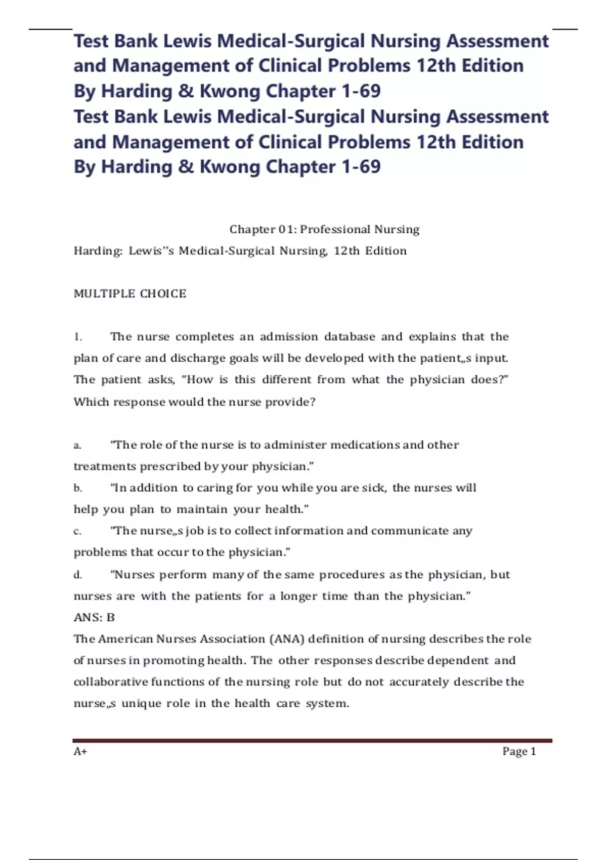 Test Bank Lewis Medical-Surgical Nursing Assessment