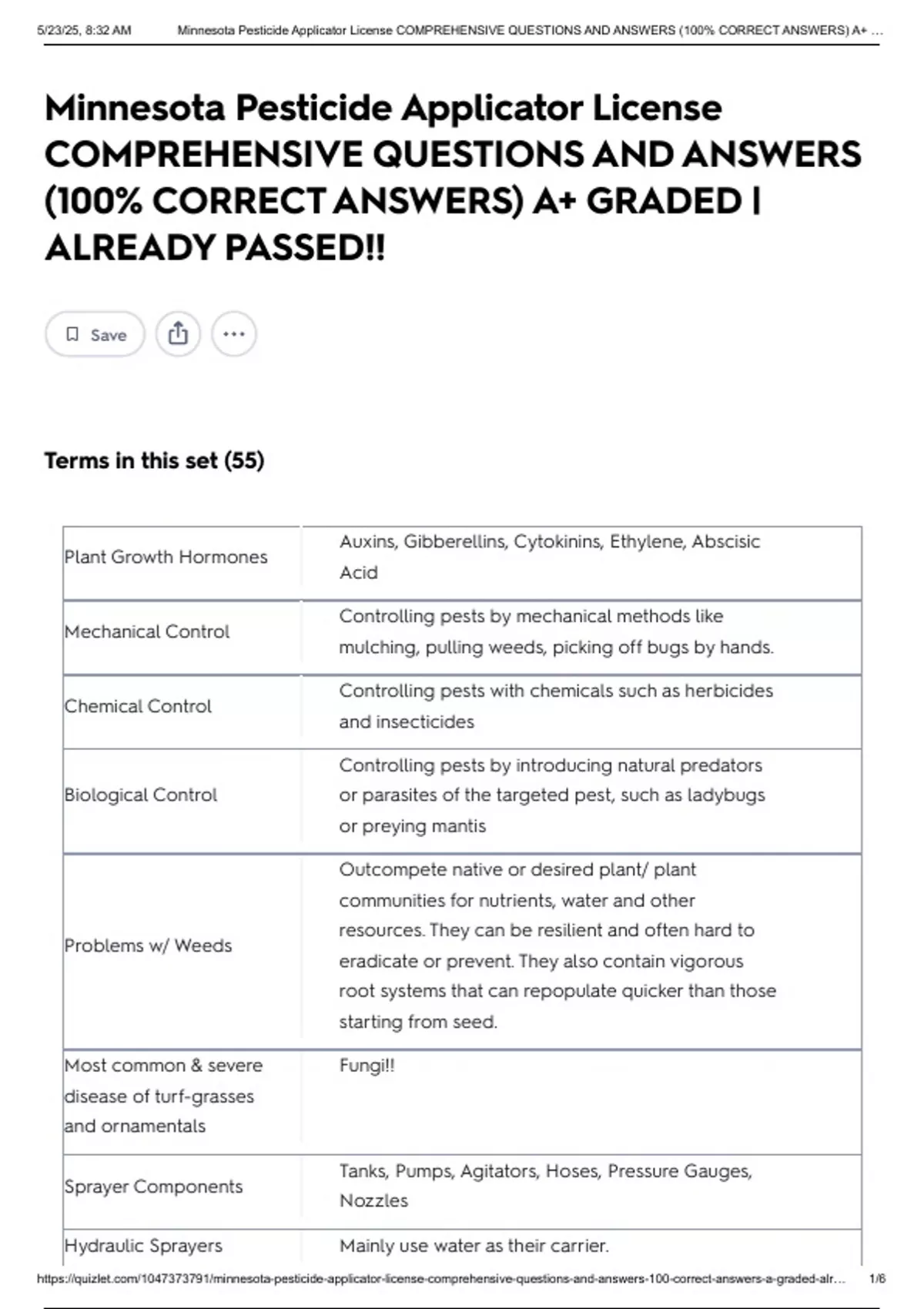 , 5/23/25, 8:32 AM Minnesota Pesticide Applicator License COMPREHENSIVE QUESTIONS AND ANSWERS (100% CORRECT ANSWERS) A+ …