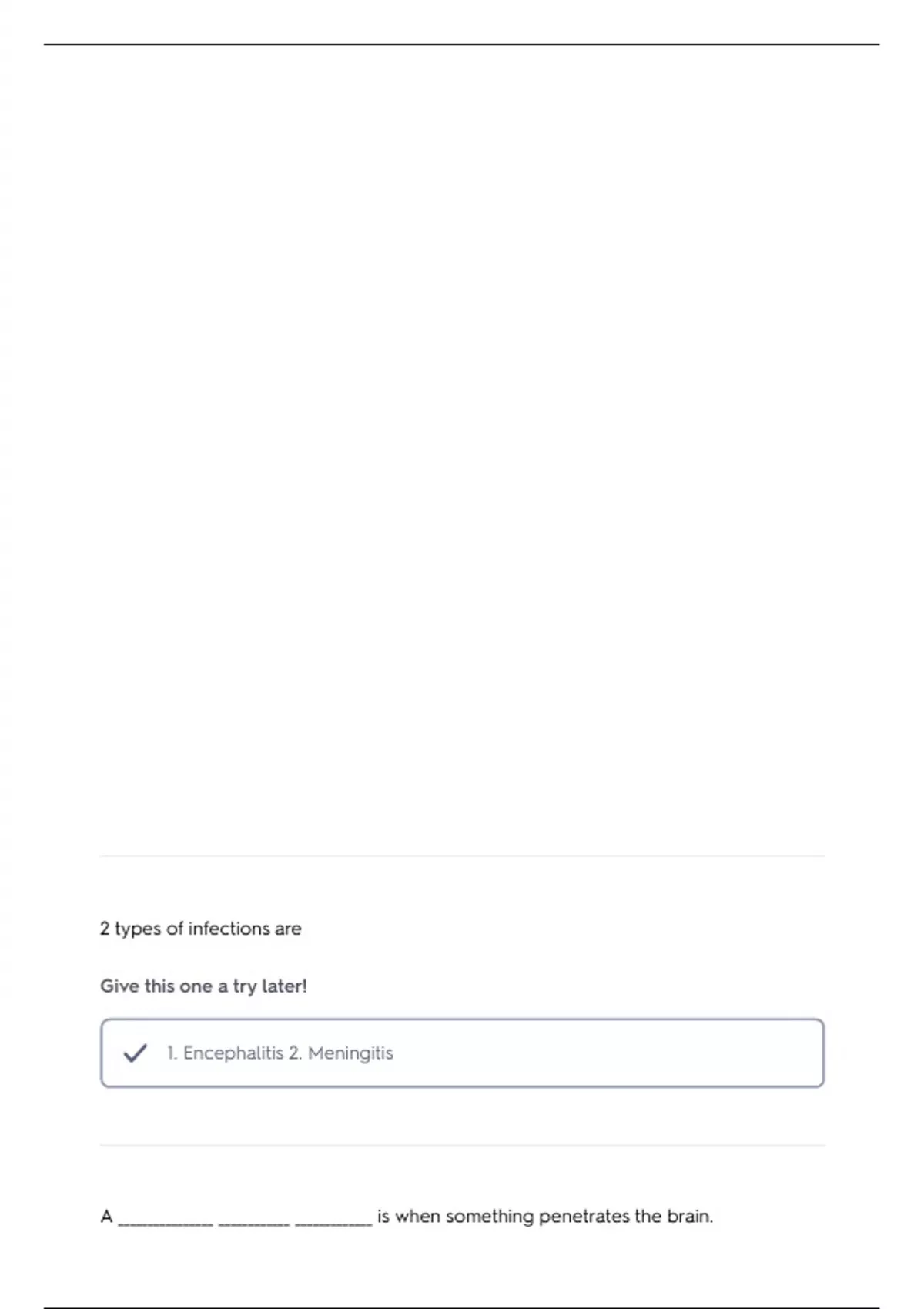 A ________________ ____________ _____________ is when something penetrates the brain.