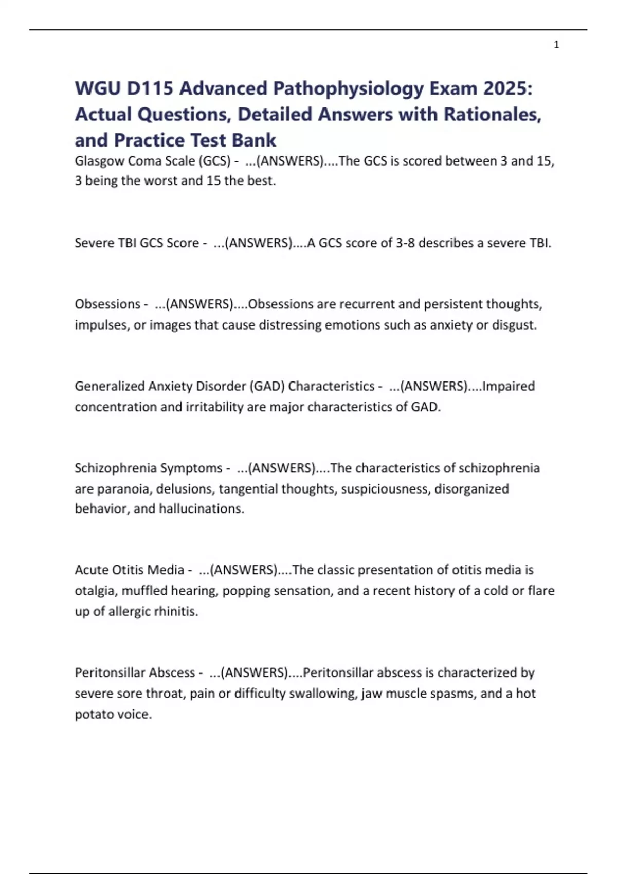 WGU D115 Advanced Pathophysiology Exam 2025: