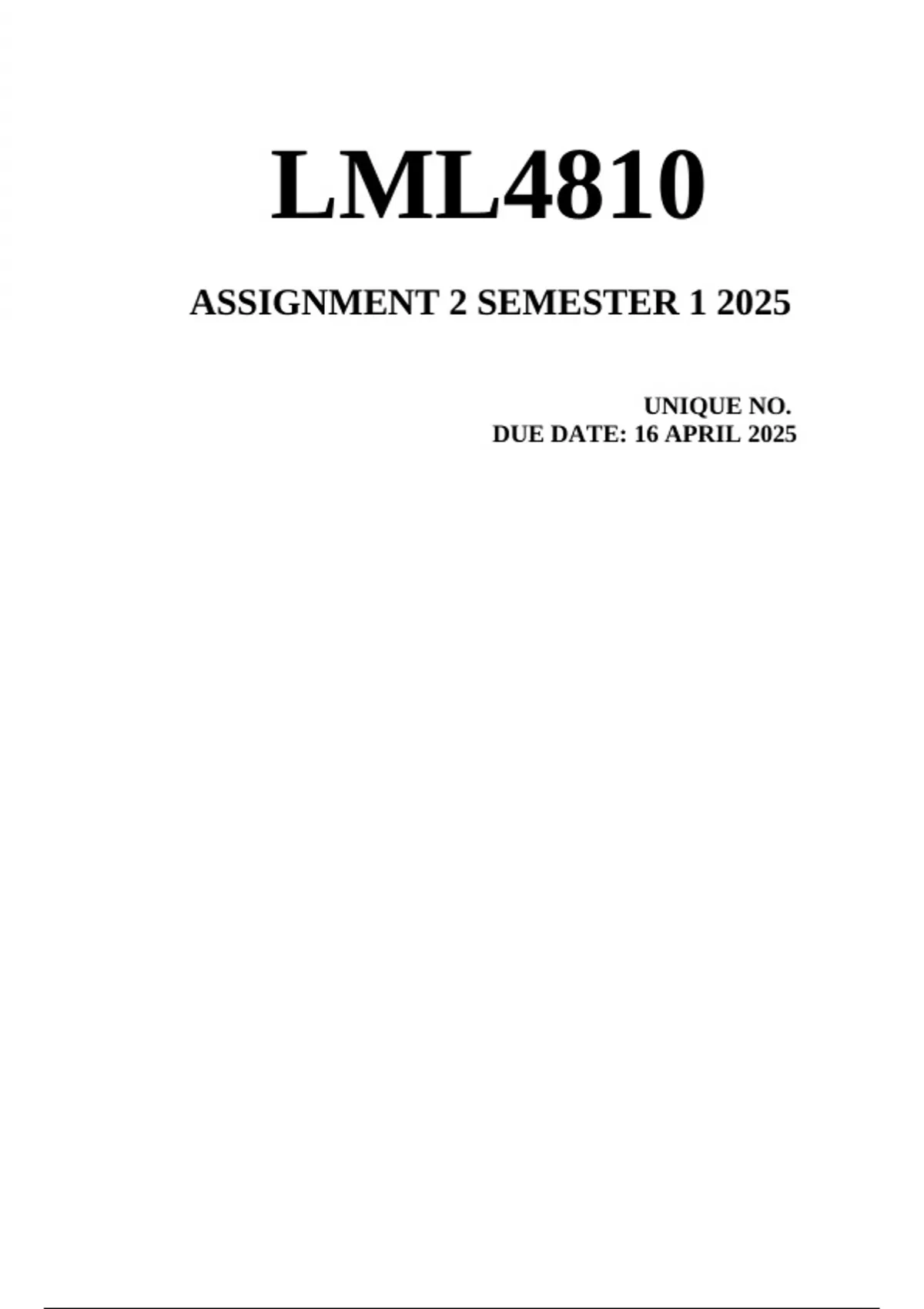 LML4810 Assignment 2 MEMO Semester 1 2025 Fully solved assignment to guide your understanding.