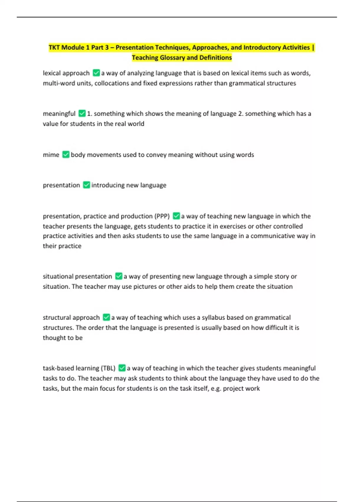 task-based learning (TBL) a way of teaching in which the teacher gives students meaningful