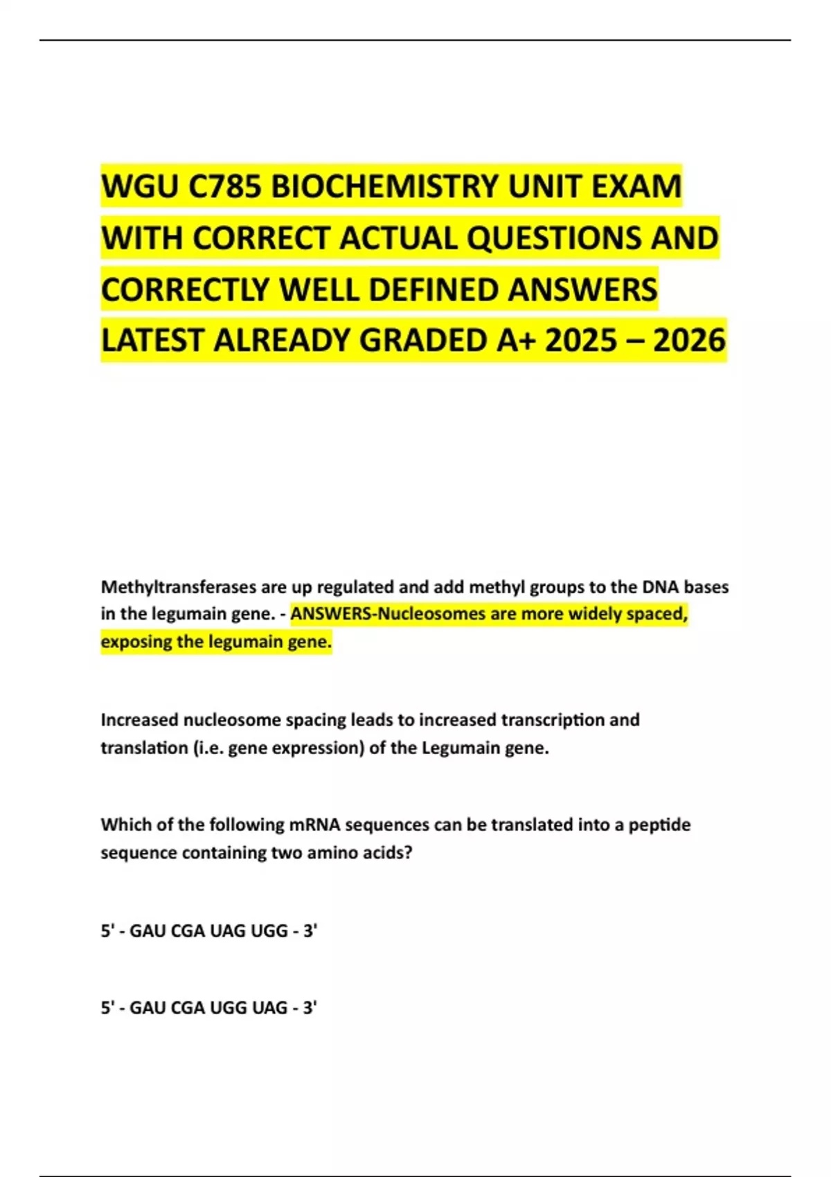 5' - GAC CAU GCG GGG - 3' - ANSWERS-5' - GAU CGA UAG UGG - 3'
