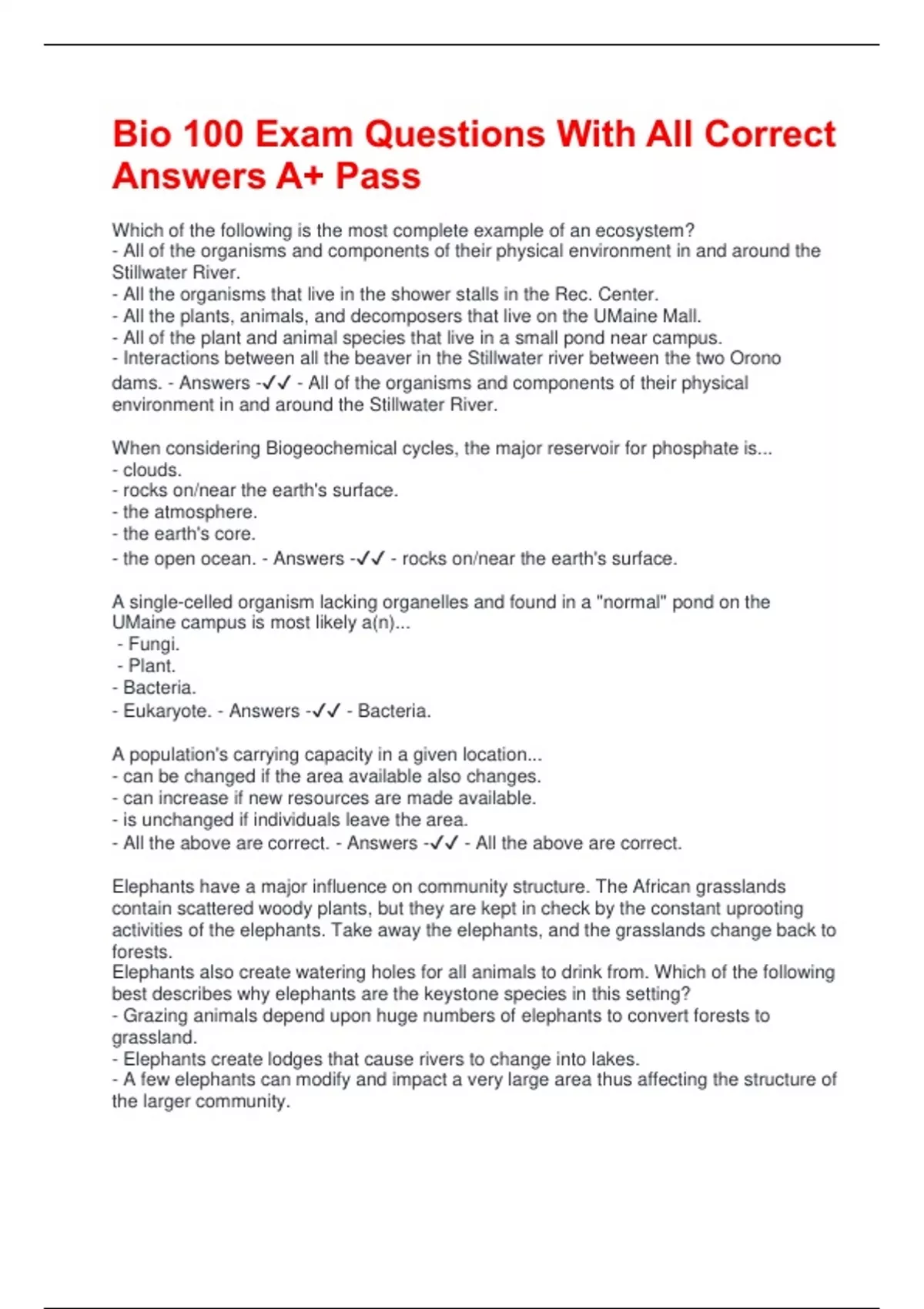 dams. - Answers -✔✔ - All of the organisms and components of their physical