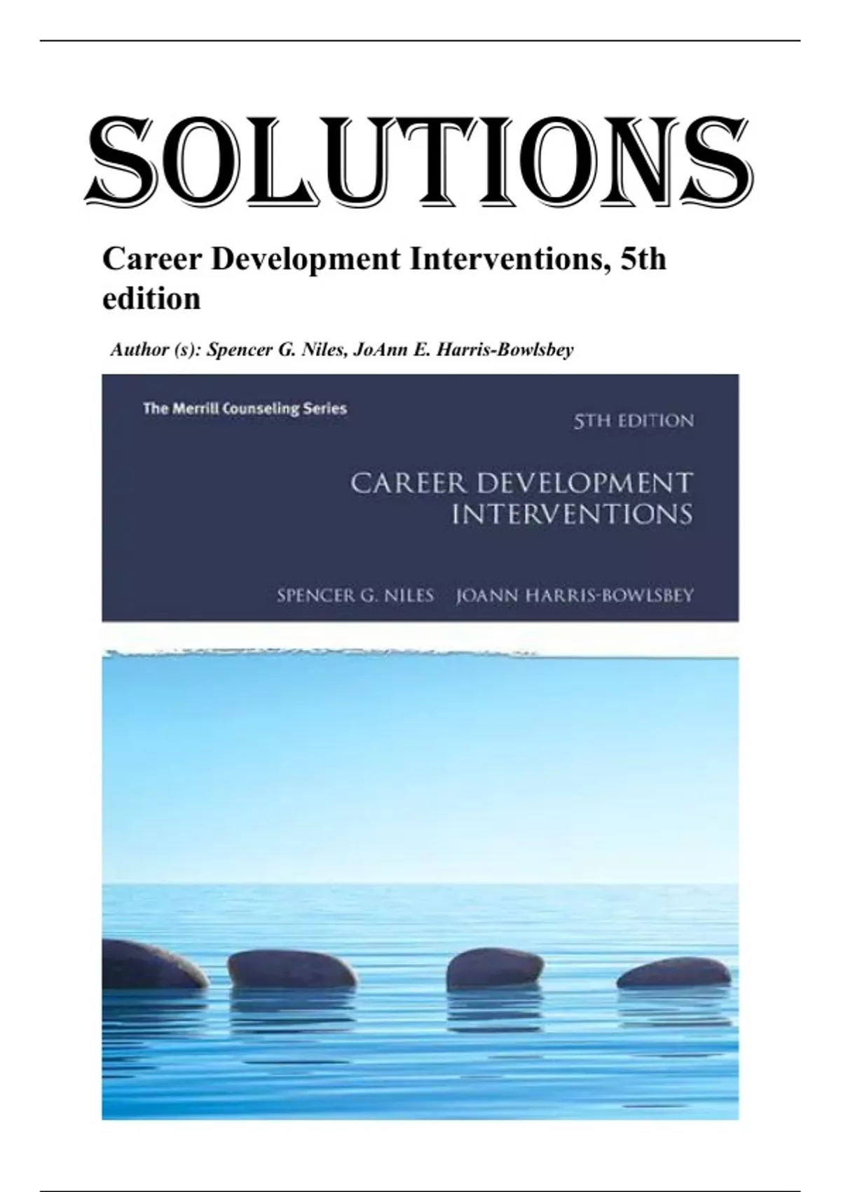 This document includes the comprehensive test bank and instructor support material for Career Development Interventions (5th Edition) by Spencer G. Niles and JoAnn E. Harris-Bowlsbey. It features chapter-wise essay and multiple-choice questions, PowerPoint outlines, key term definitions, class discussion prompts, and applied learning activities. Core topics include traditional and postmodern career theories (Holland, Super, Krumboltz, Gottfredson, SCCT, CIP), multicultural interventions, assessment tools, and future career development trends. This material is ideal for career counseling students and professionals seeking to master both theoretical and practical frameworks.