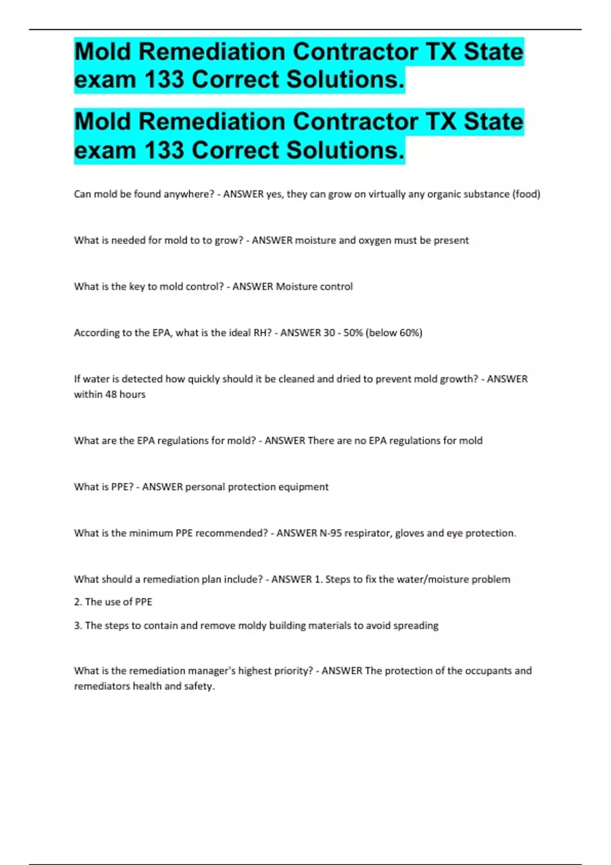 Remediation involves what 3 steps according to the EPA book? - ANSWER 1. Fix the water/humidity