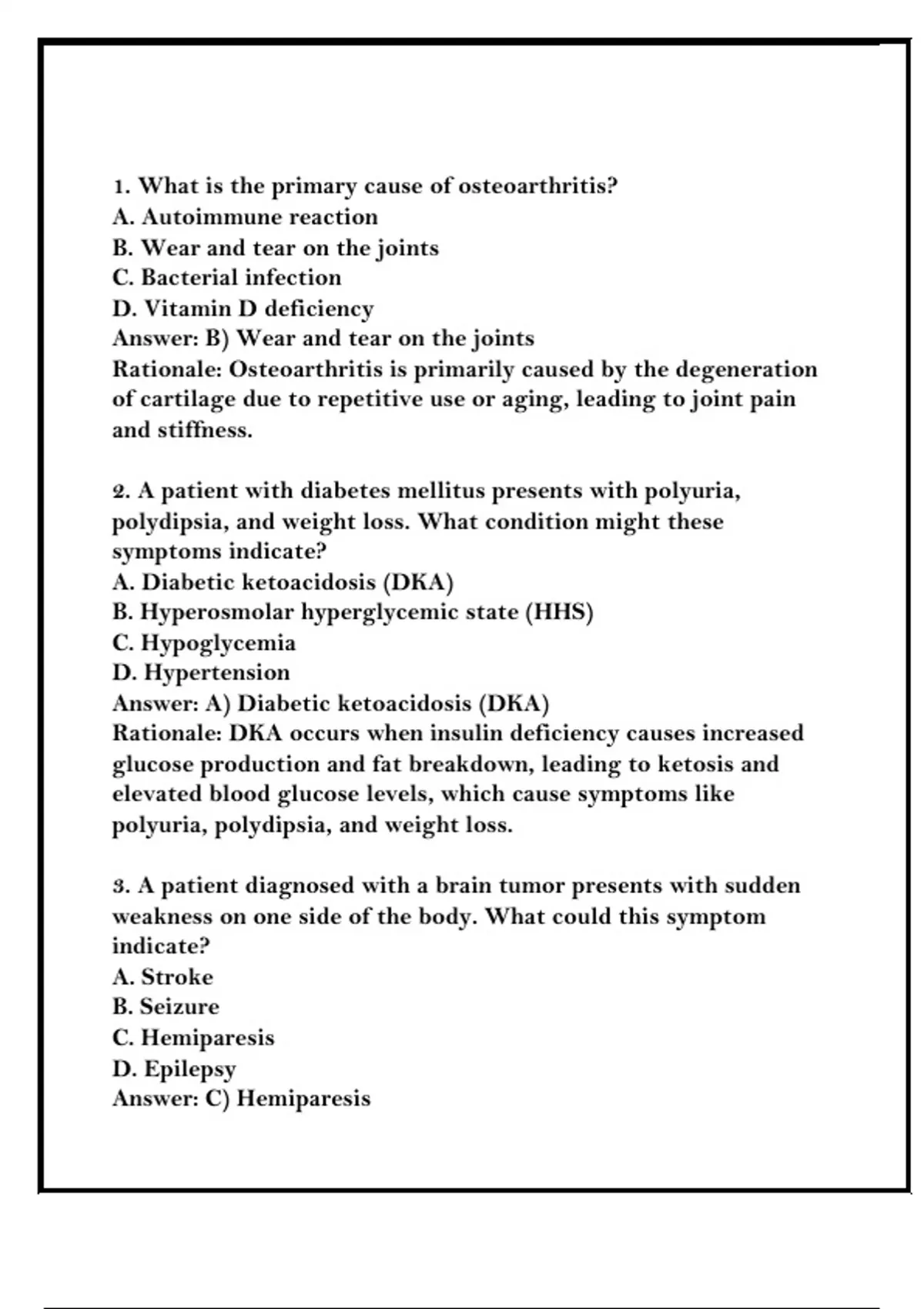 3. A patient diagnosed with a brain tumor presents with sudden