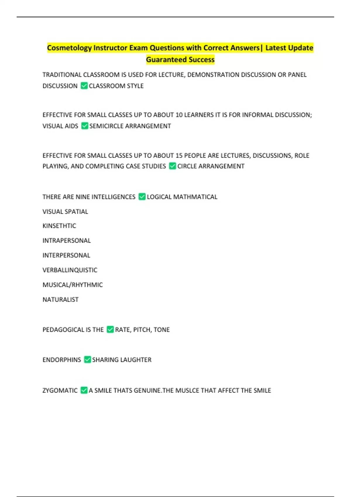 Cosmetology Instructor Exam Questions with Correct Answers| Latest Update Guaranteed Success