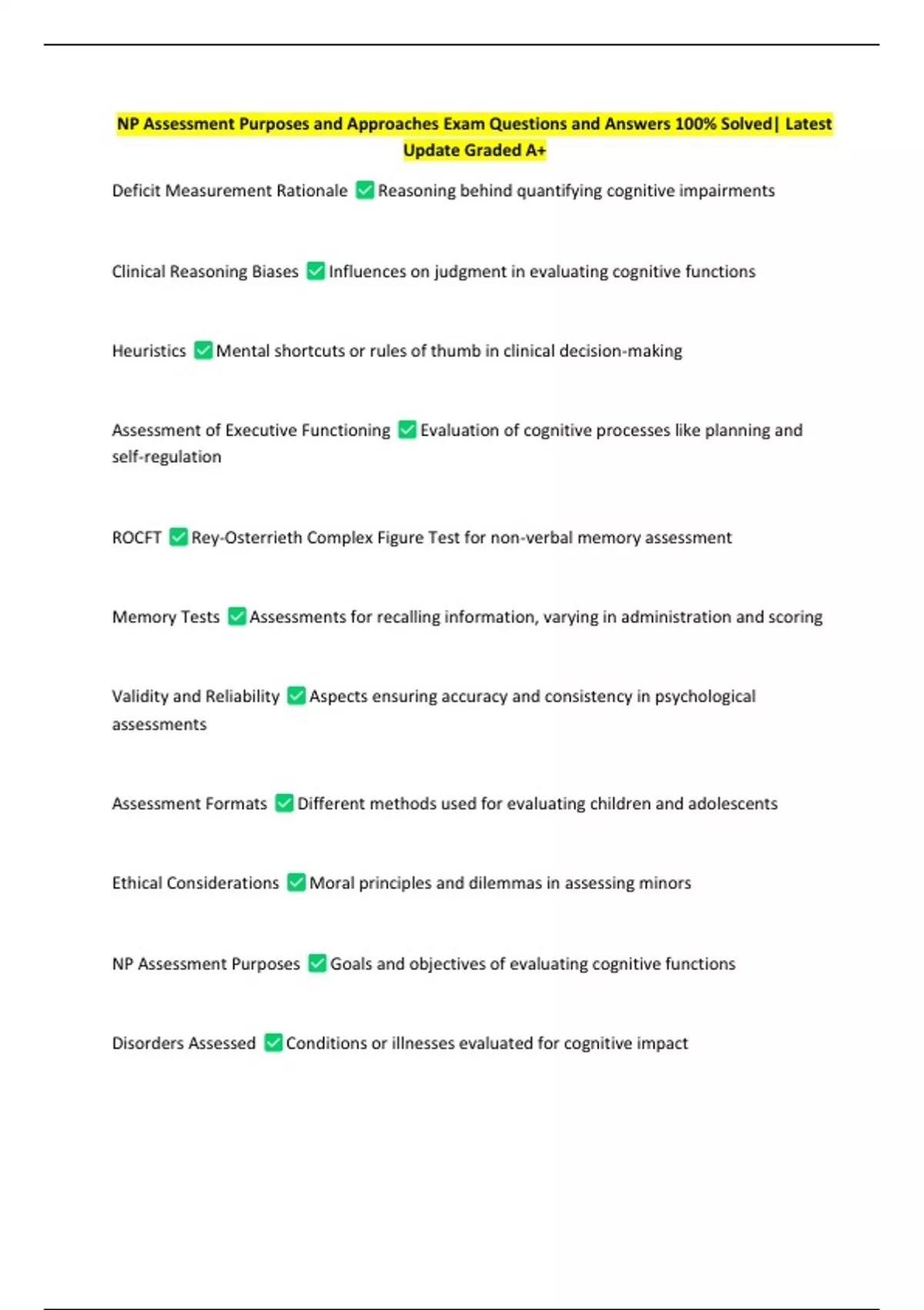 NP Assessment Purposes and Approaches Exam Questions and Answers 100% Solved| Latest