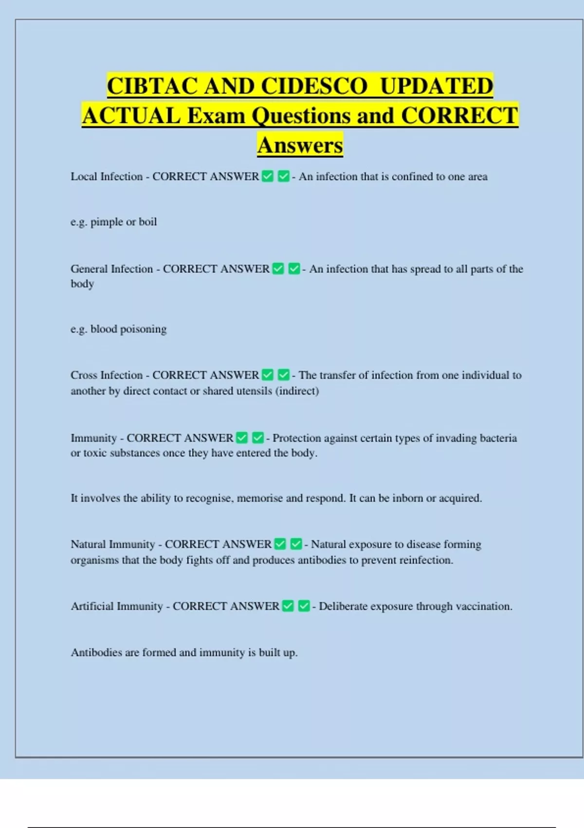 ,Sanitise - CORRECT ANSWER - To render object clean and sanitary.