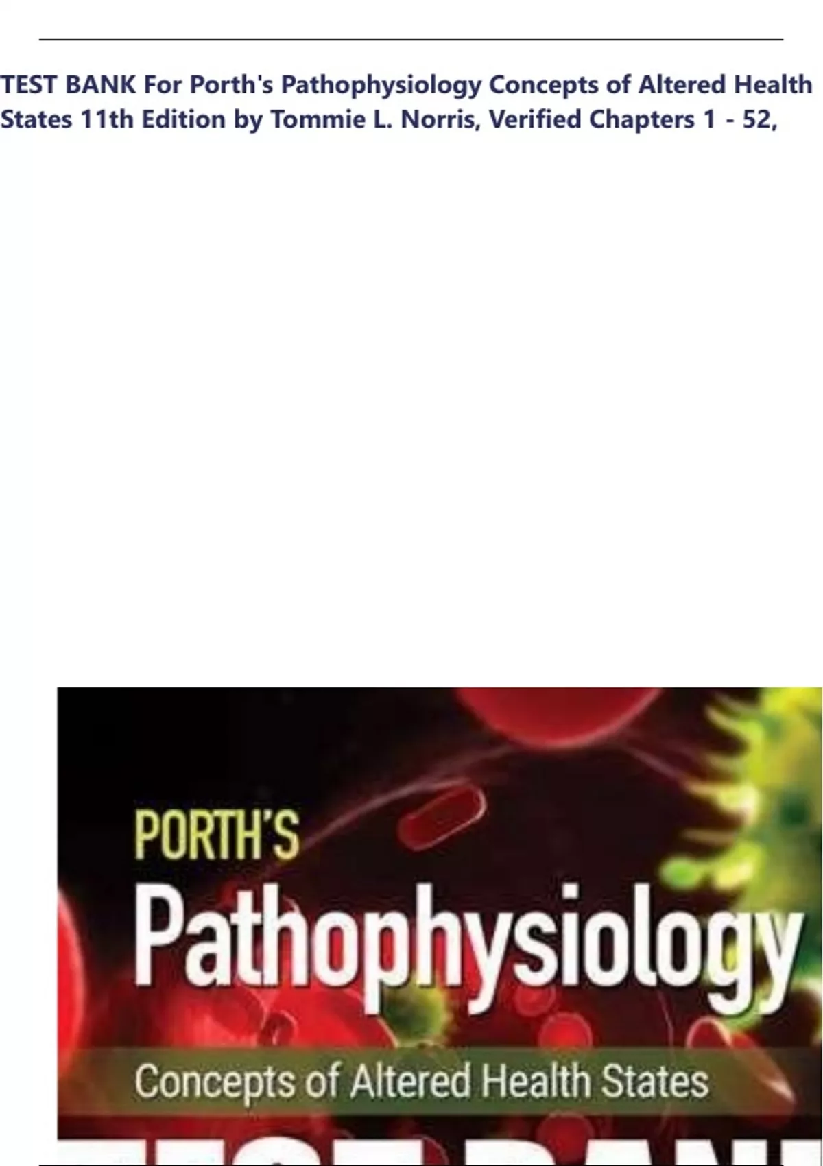 , TEST BANK FOR PORTH'S PATHOPHYSIOLOGY 10TH EDITION BY NORRIS