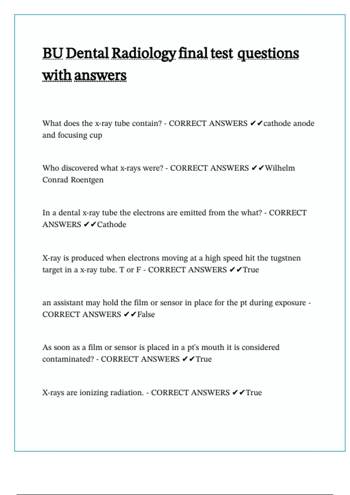 BU Dental Radiology final test questions with answers
