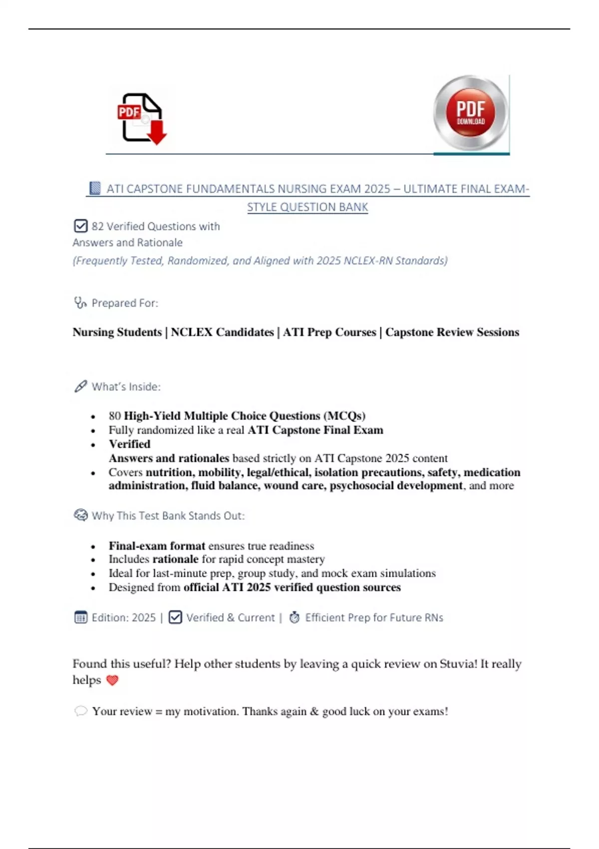 , ✅ ATI CAPSTONE FUNDAMENTALS PRACTICE EXAM – TEST BANK WITH FREQUENTLY TESTED