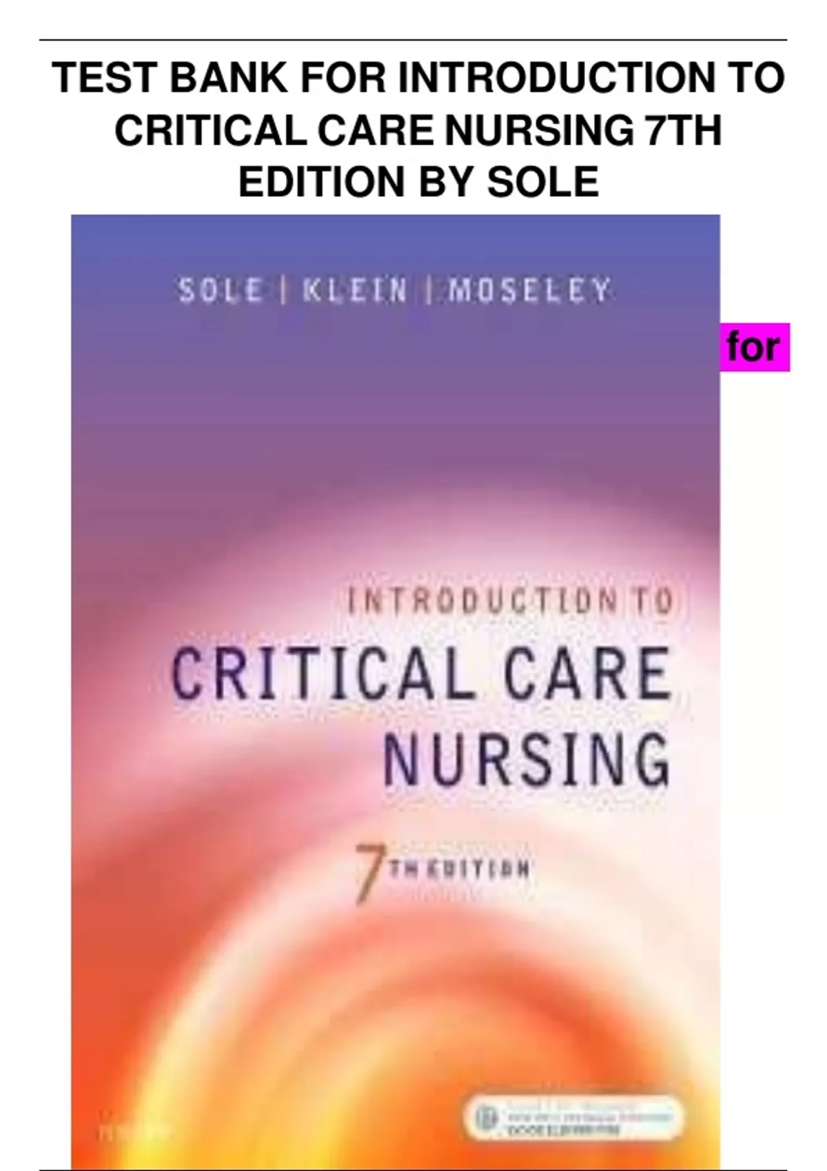 TEST BANK FOR INTRODUCTION TO CRITICAL CARE NURSING 7TH EDITION BY SOLE