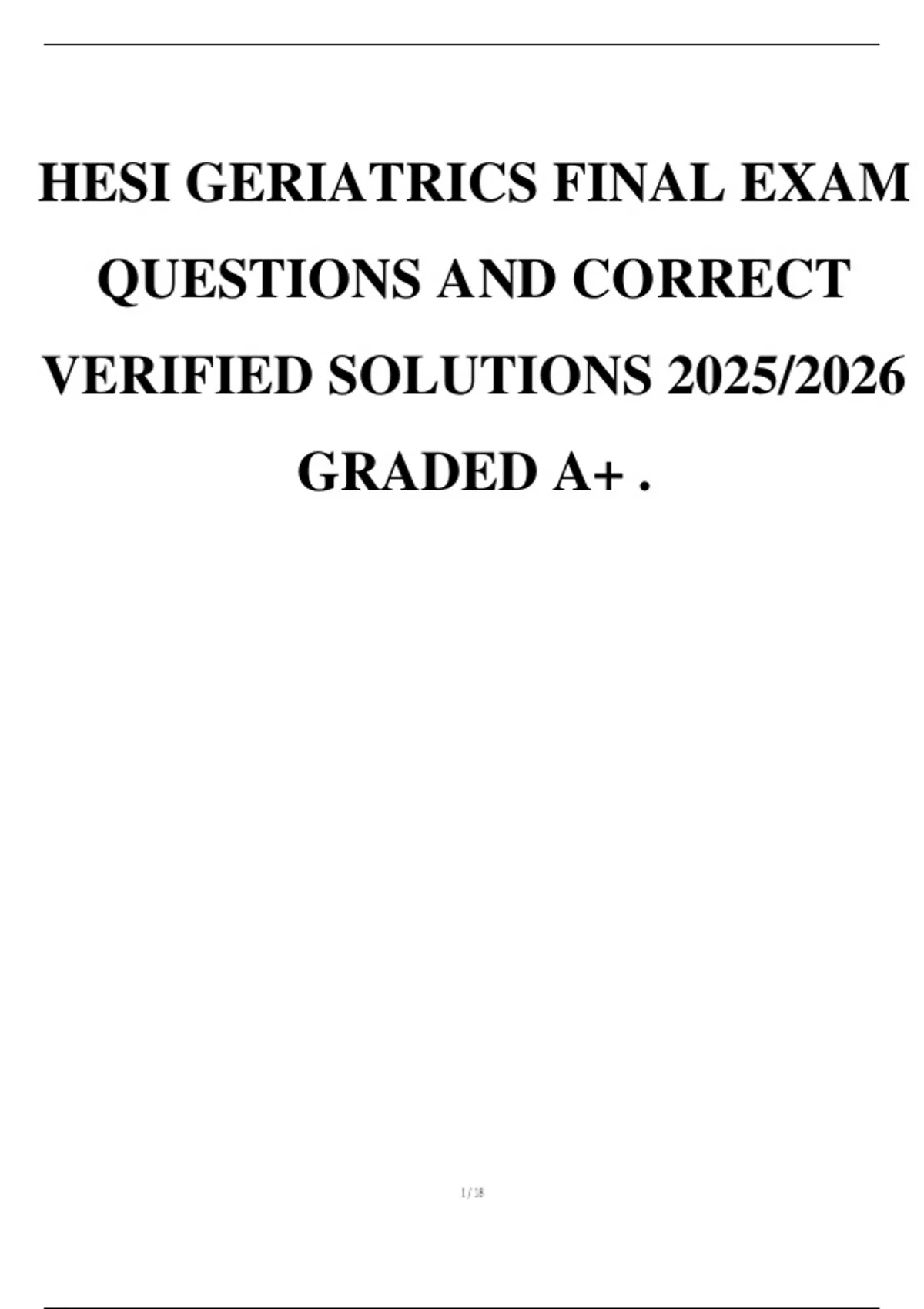 HESI GERIATRICS FINAL EXAM QUESTIONS AND CORRECT VERIFIED SOLUTIONS 2025/2026 GRADED A+ .