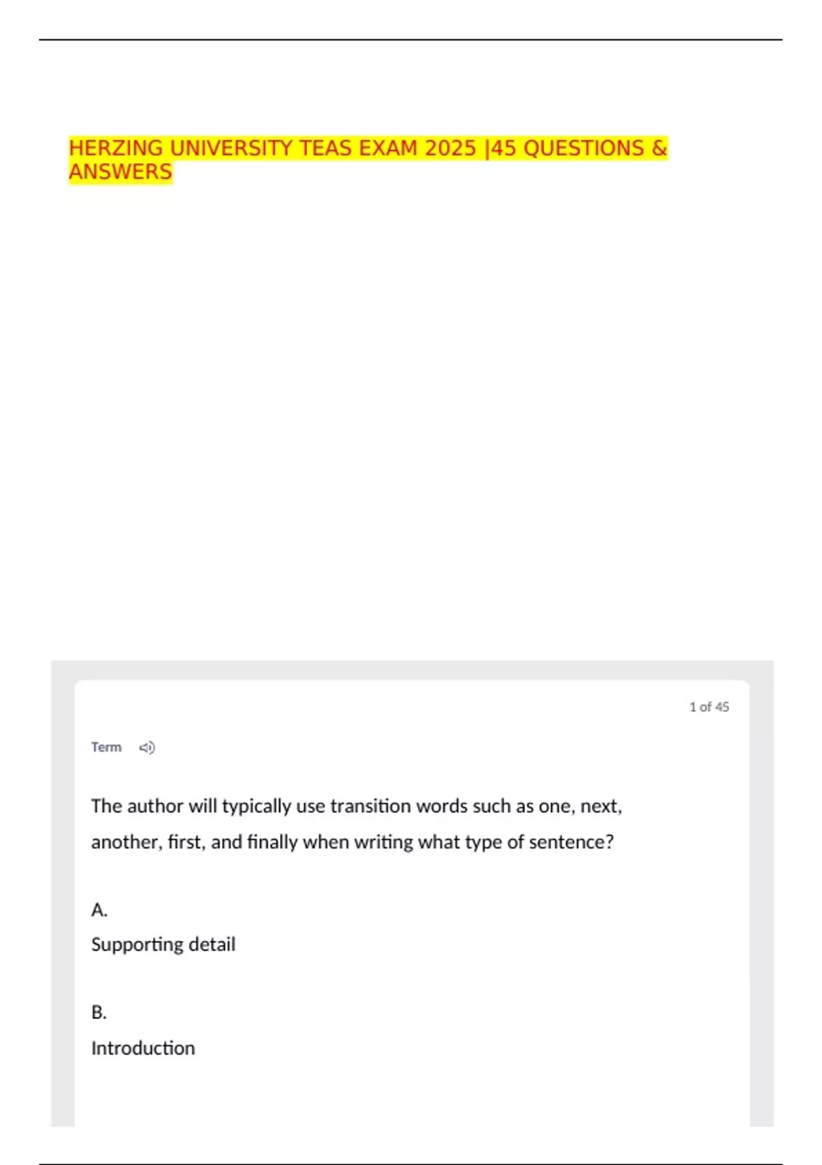 ATI TEAS Exam Practice Questions – Herzing University – 2025 | 45-Item Quizlet-Based Test Preparation