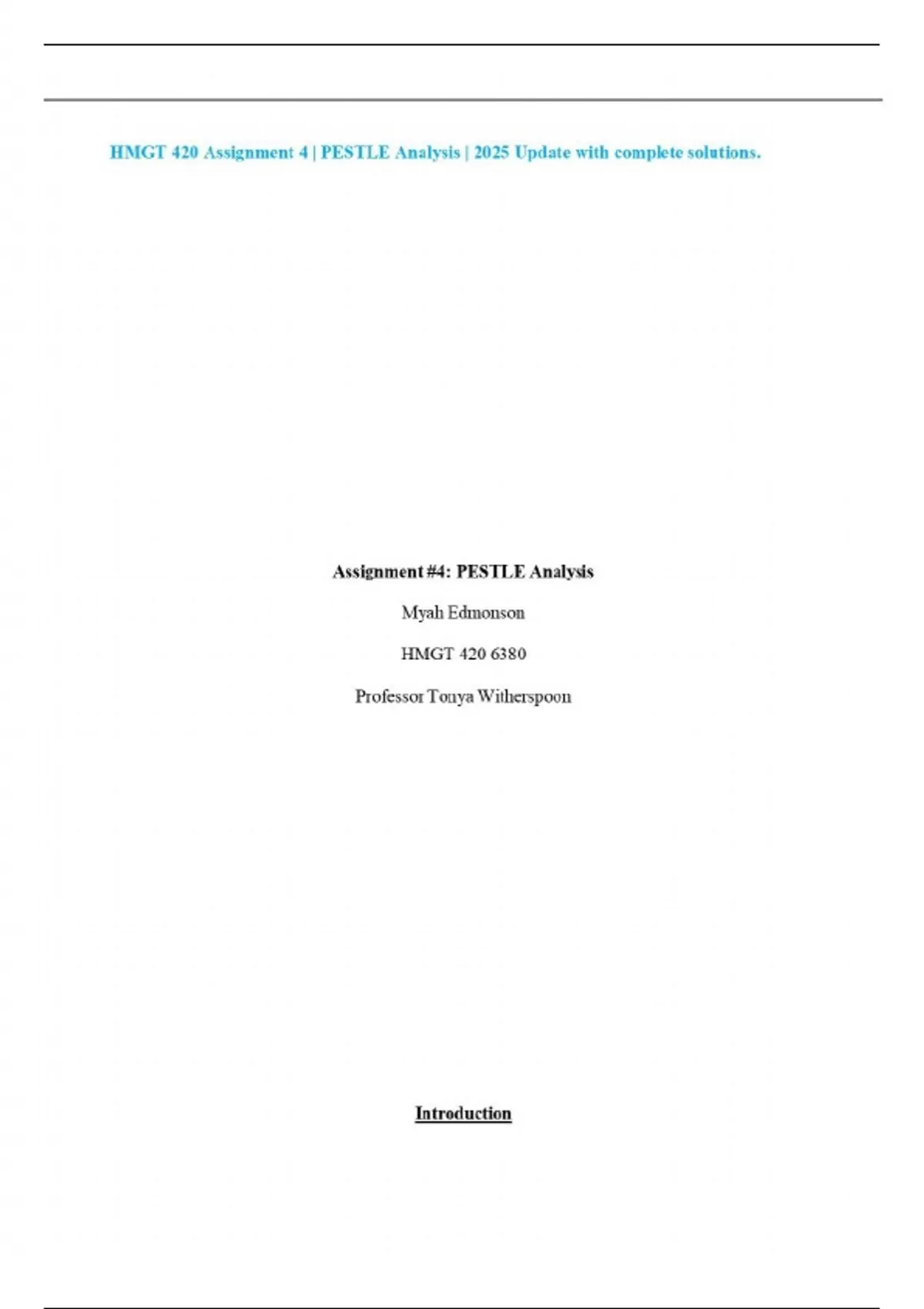 HMGT 420 Assignment 4 | PESTLE Analysis | 2025 Update with complete solutions.