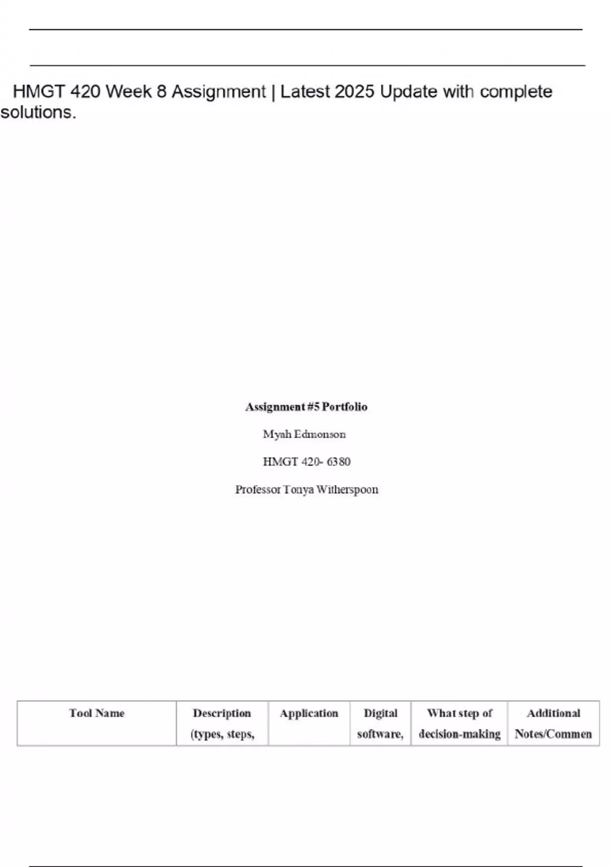 HMGT 420 Week 8 Assignment | Latest 2025 Update with complete solutions.