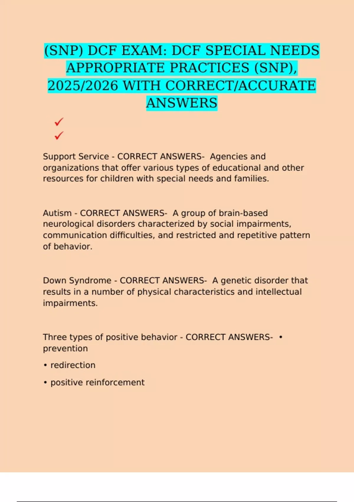 Down Syndrome - CORRECT ANSWERS- A genetic disorder that