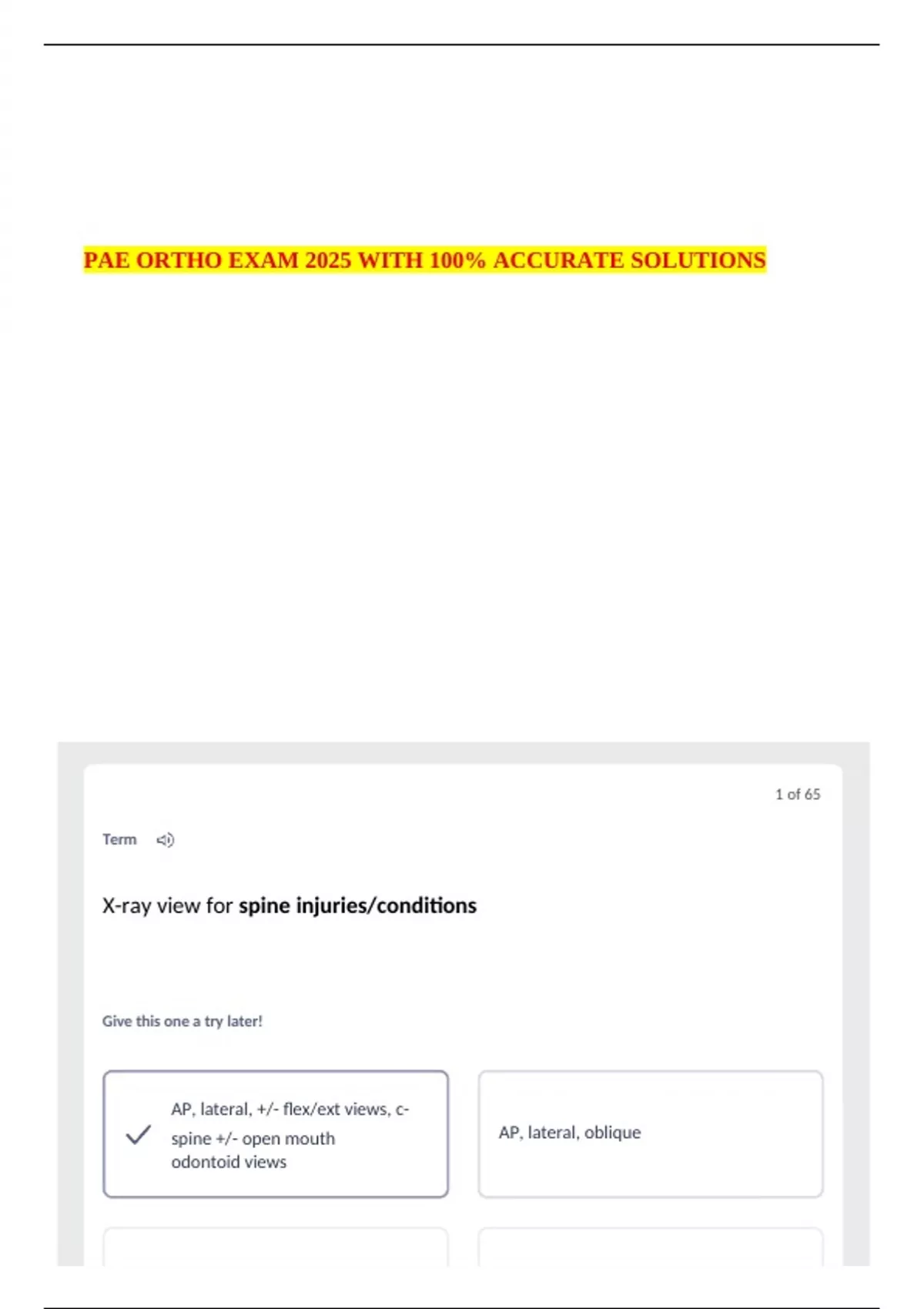 PAE ORTHO EXAM 2025 WITH 100% ACCURATE SOLUTIONS