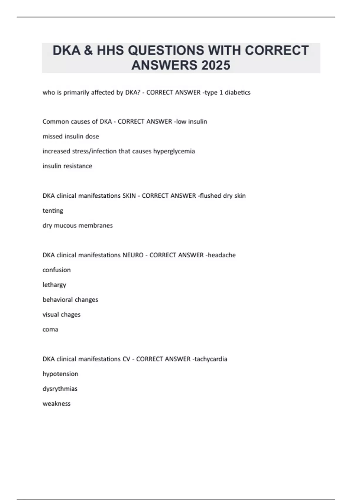 DKA & HHS QUESTIONS WITH CORRECT