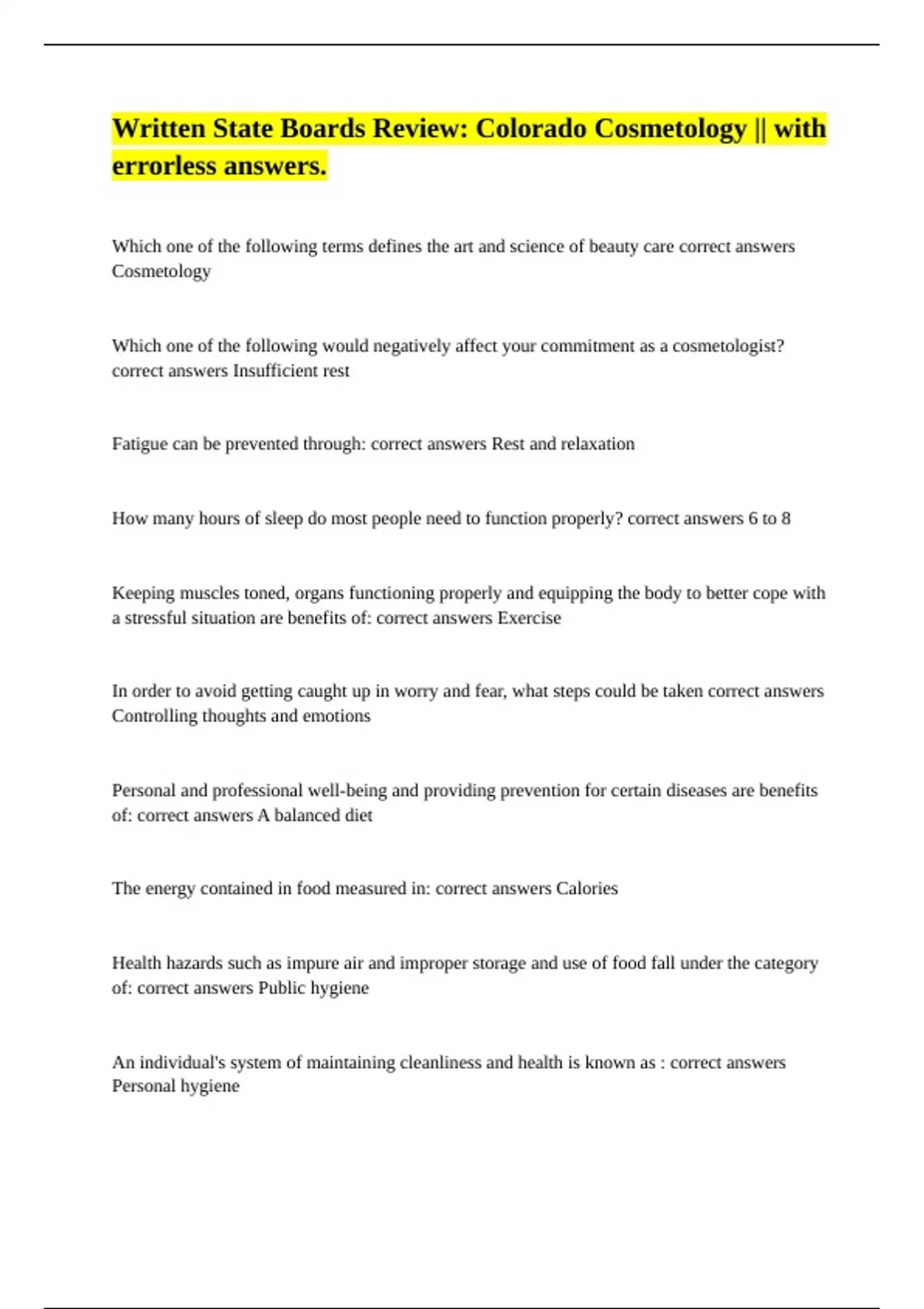 correct answers Insufficient rest
