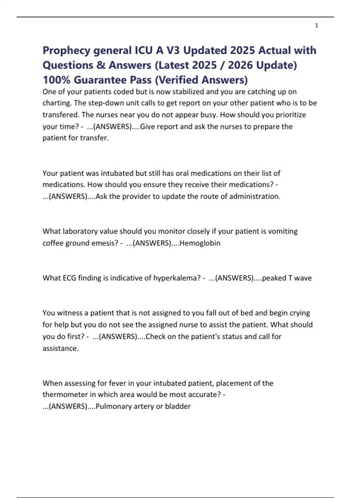Prophecy general ICU A V3 Updated 2025 Actual with