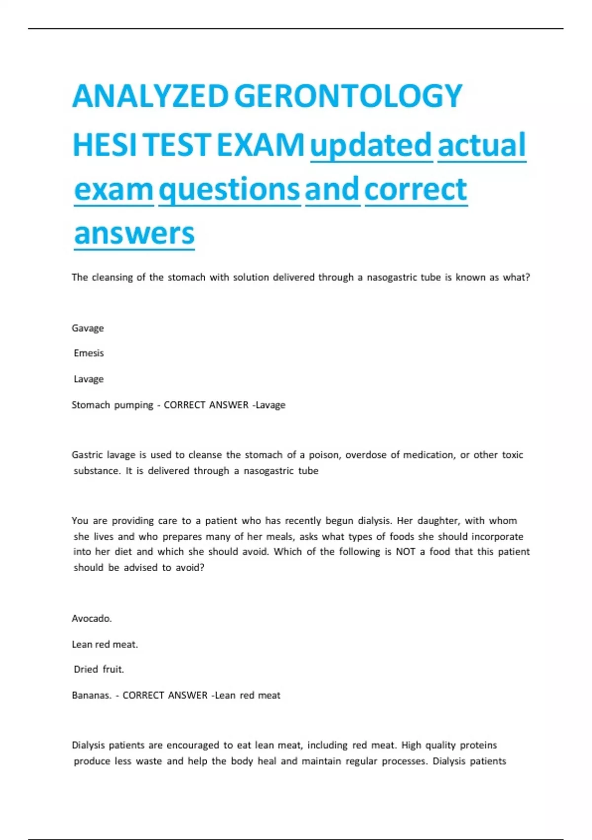 Stomach xpumping x- xCORRECT xANSWER x-Lavage