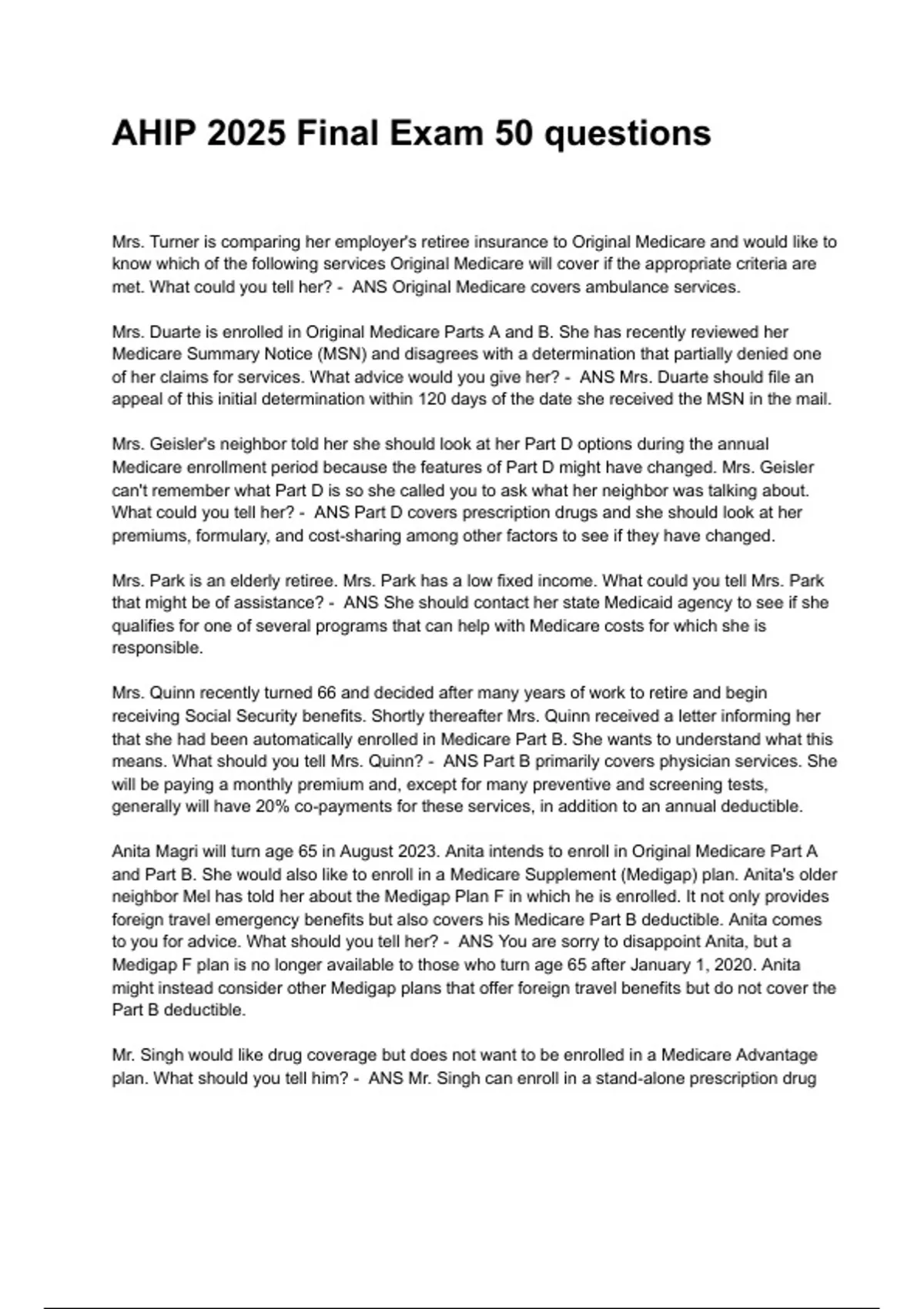 Final Exam for AHIP Training Test Questions and Answers |Complete Guide Latest Update
