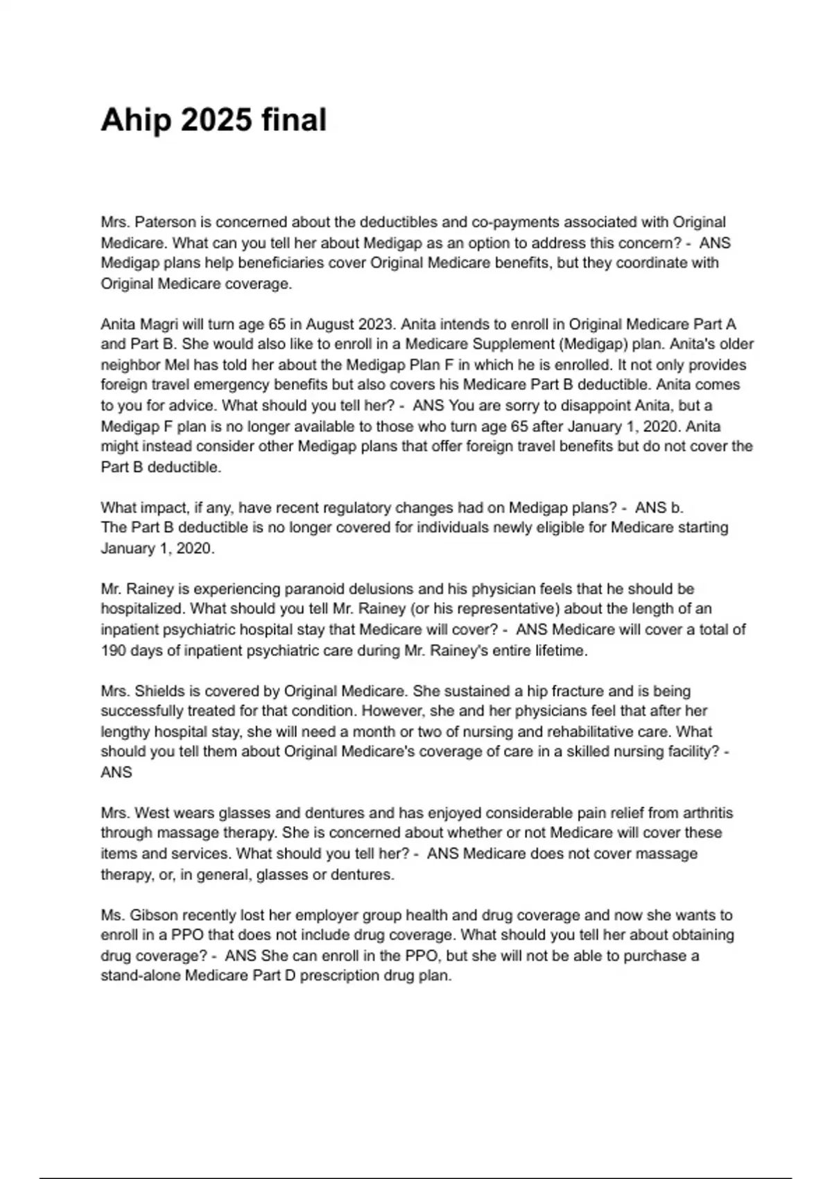 Ahip Exam Questions and Complete Answers Latest Update |All Verified