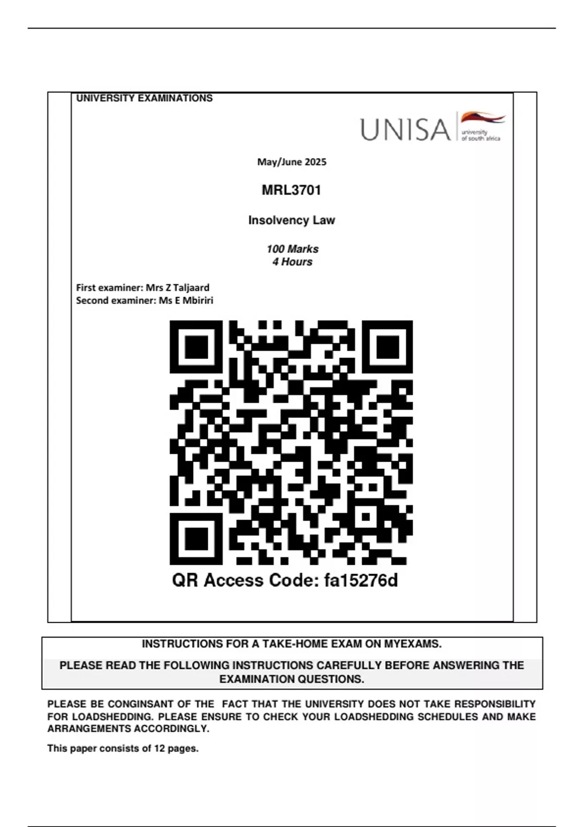 the myExams platform on 23 May 2025 BEFORE 12:30PM (South African Standard Time).